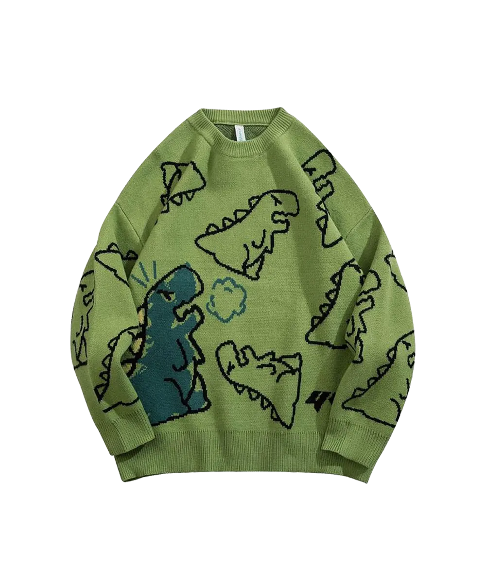 Arssm Dinosaur Sweater Women y2k Vintage Oversized Graphic Streetwear Knit Sweater Casual Cute Kawaii Tops(Green)