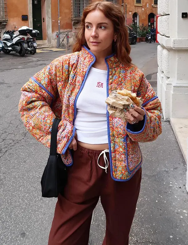 Arssm Women Floral Quilted Puffer Jacket Cropped Lightweight Patchwork Vintage Padded Short Coat Outerwear(Greenfloral)