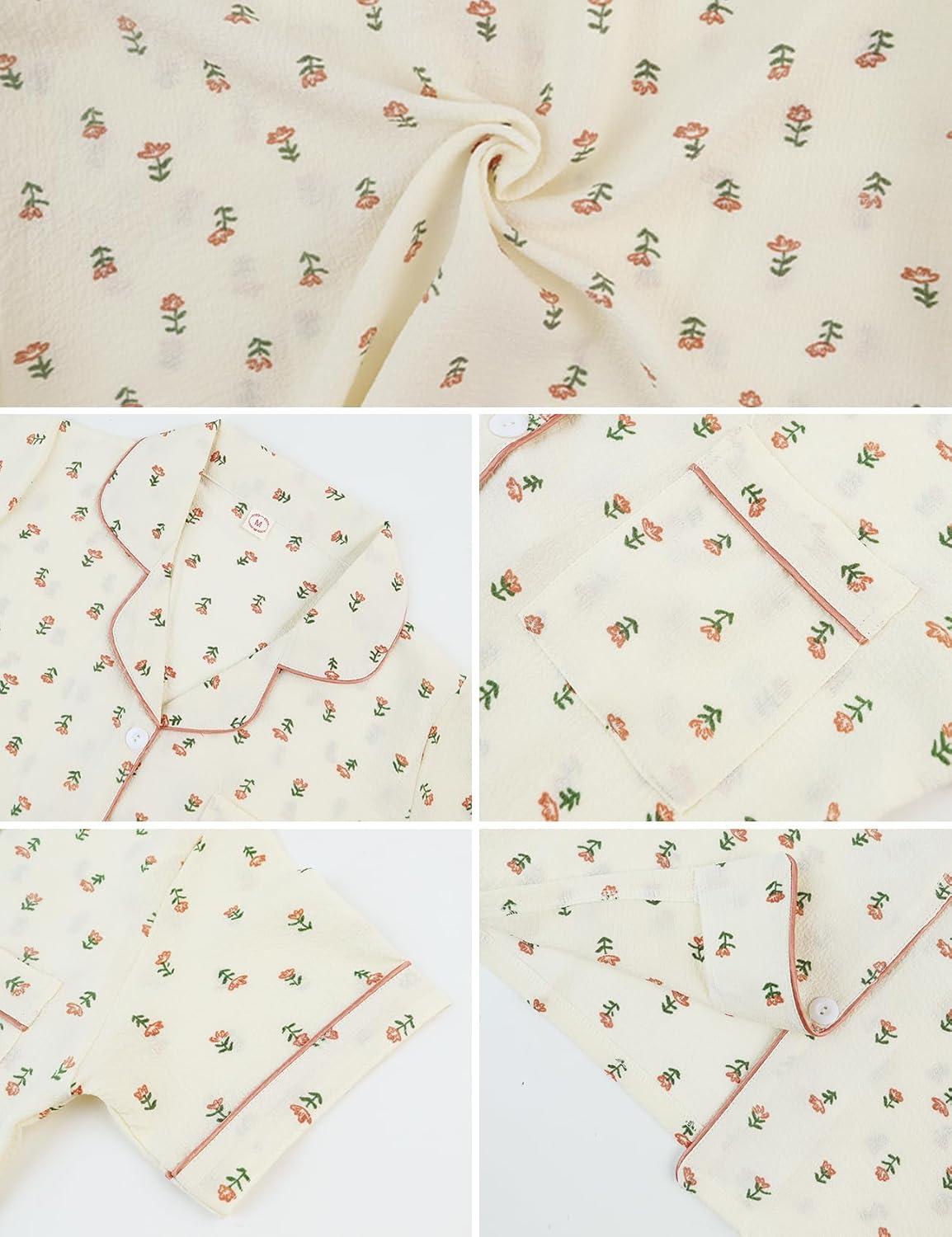 Arssm Floral Pajama Set Women Cute Kawaii 2 Piece Matching Pj Set Aesthetic Short Sleeve Sleeping Loungewear(Floral)