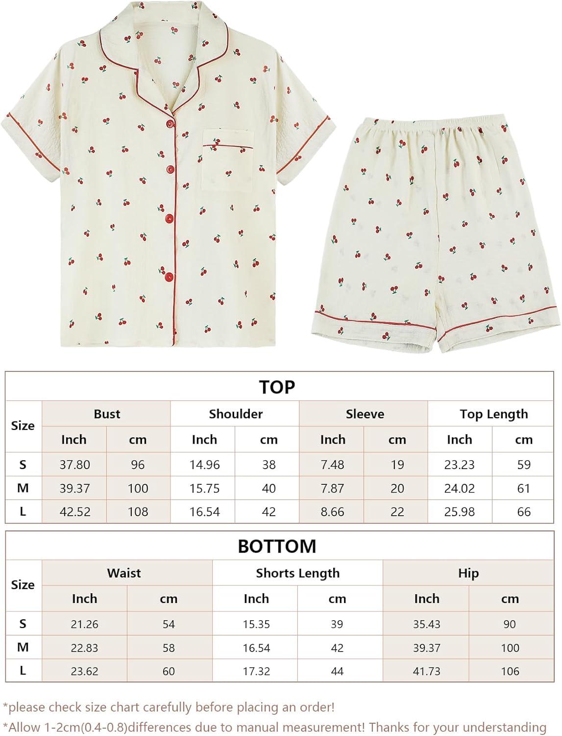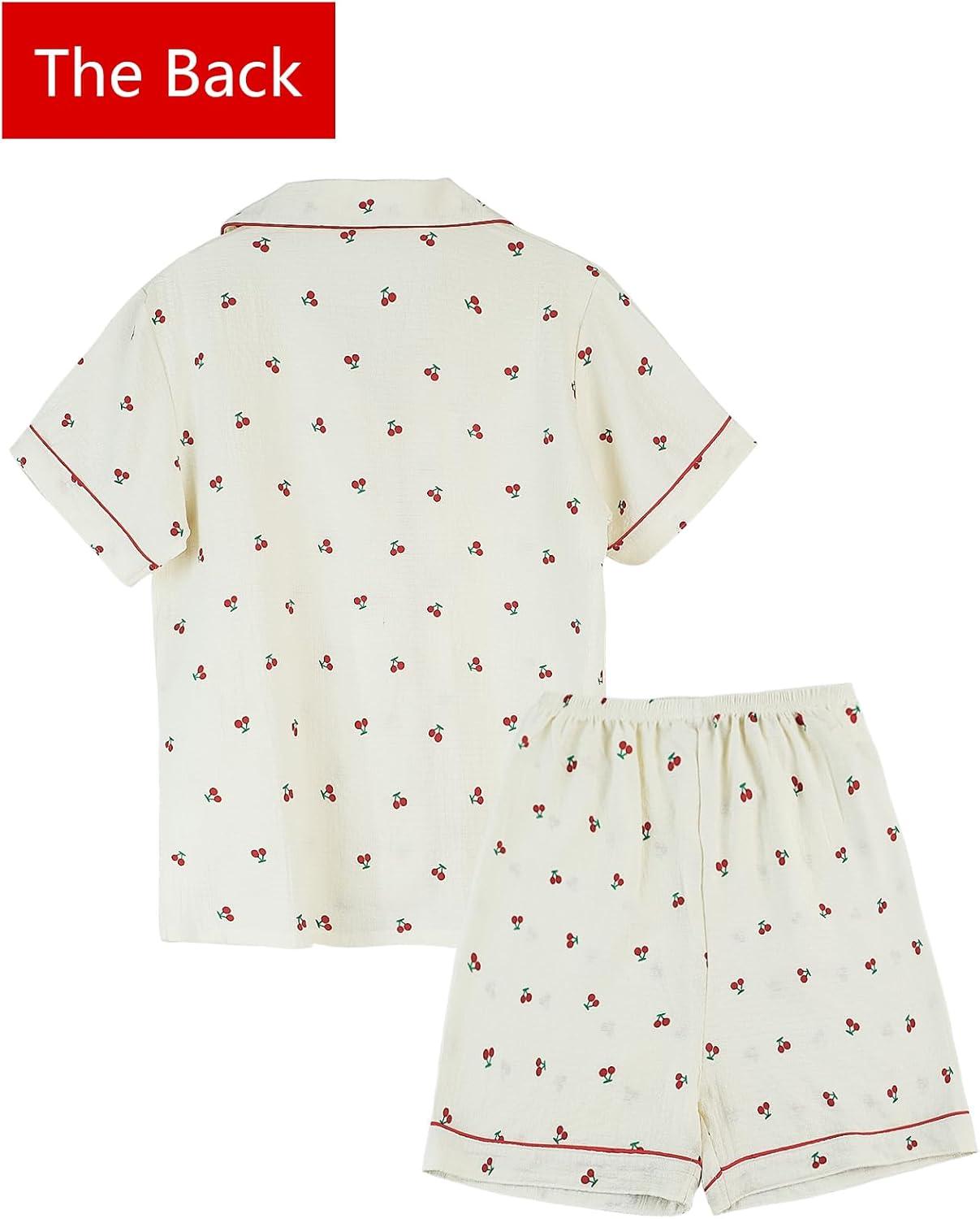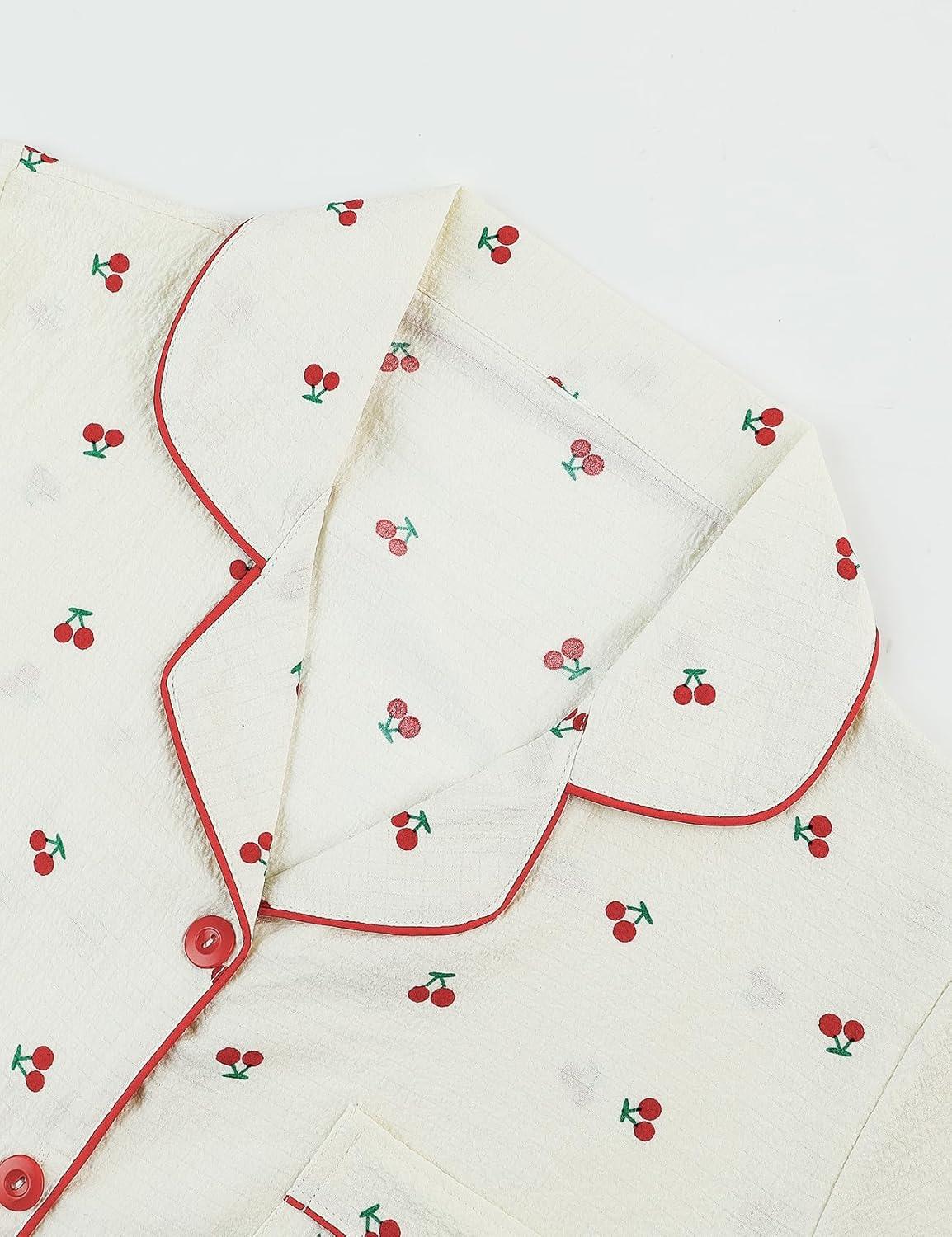 Arssm Floral Pajama Set Women Cute Kawaii 2 Piece Matching Pj Set Aesthetic Short Sleeve Sleeping Loungewear(Redcherry)