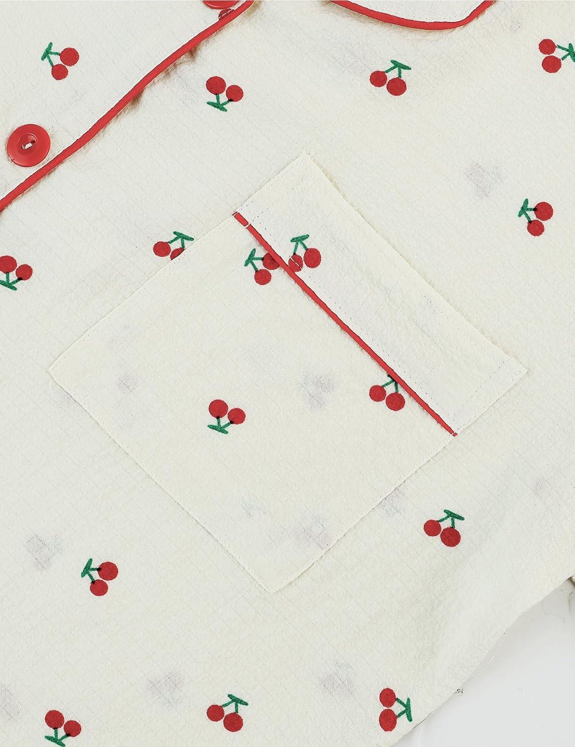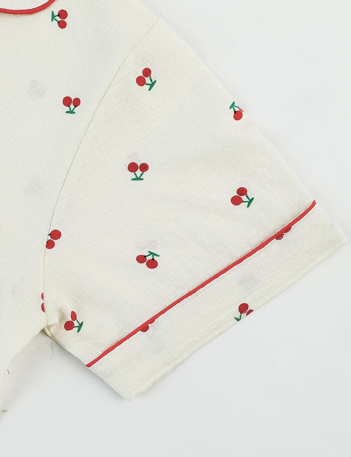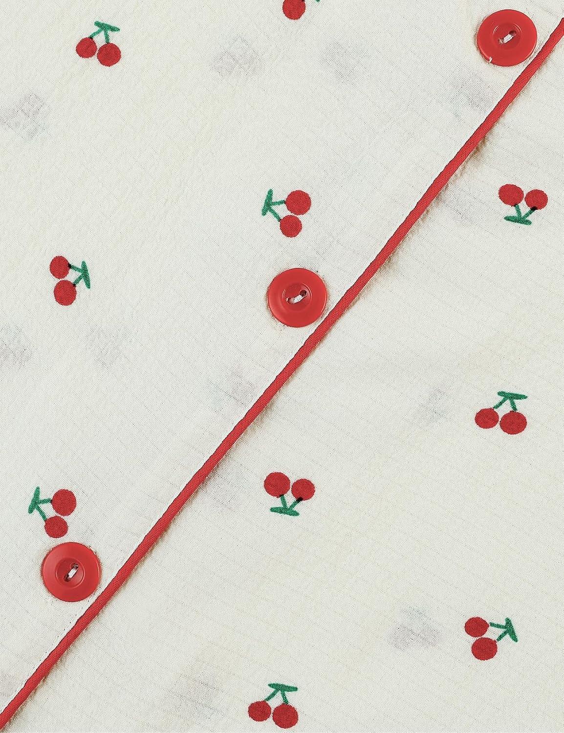 Arssm Floral Pajama Set Women Cute Kawaii 2 Piece Matching Pj Set Aesthetic Short Sleeve Sleeping Loungewear(Redcherry)