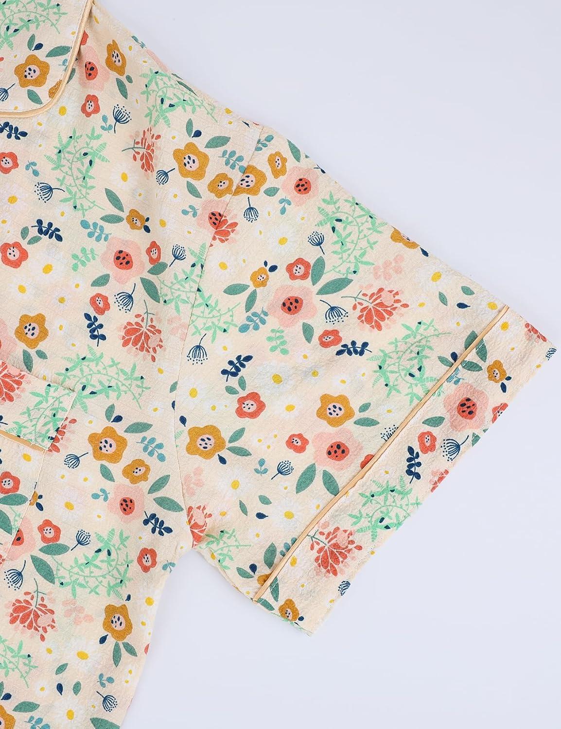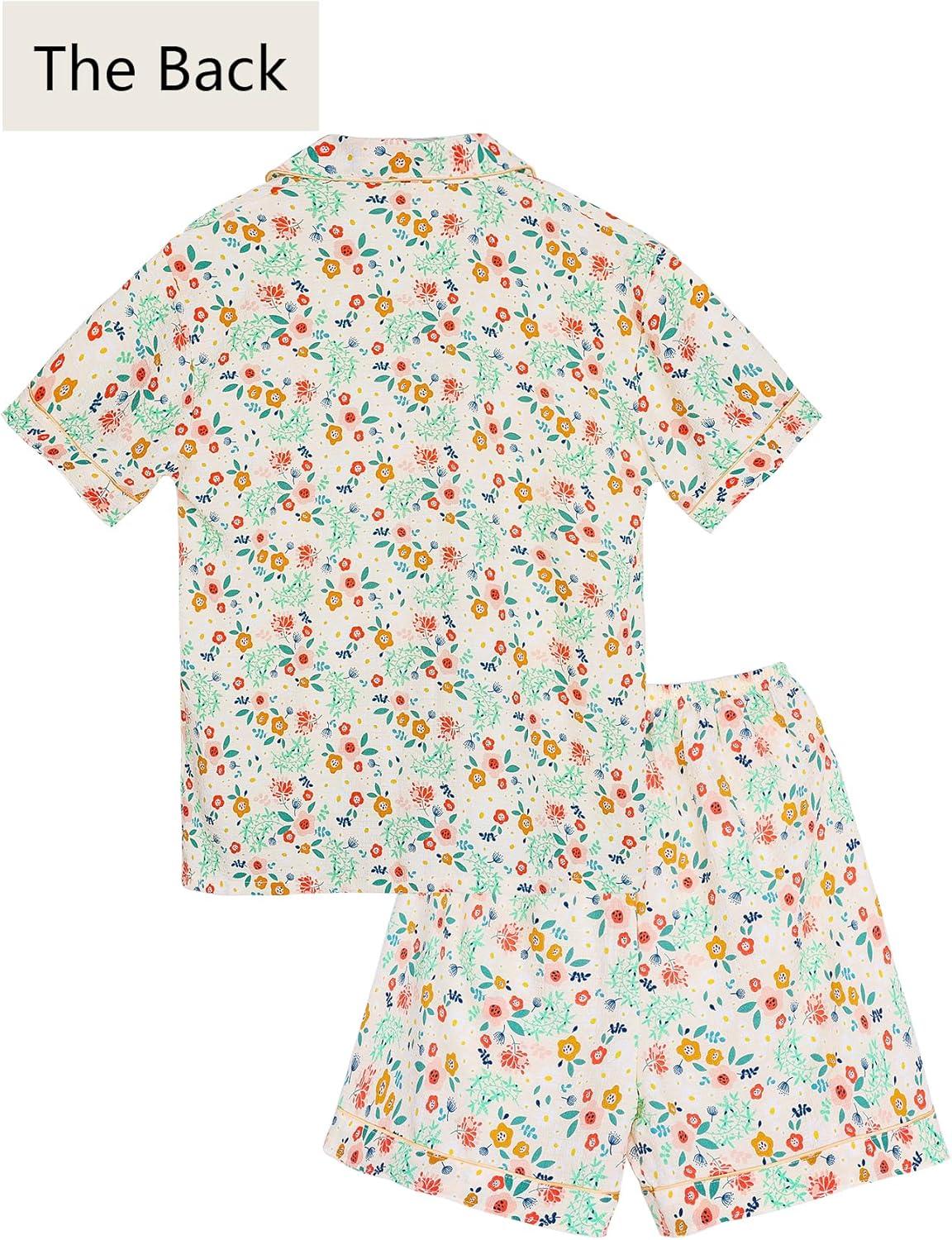 Arssm Floral Pajama Set Women Cute Kawaii 2 Piece Matching Pj Set Aesthetic Short Sleeve Sleeping Loungewear(Yellowfloral)