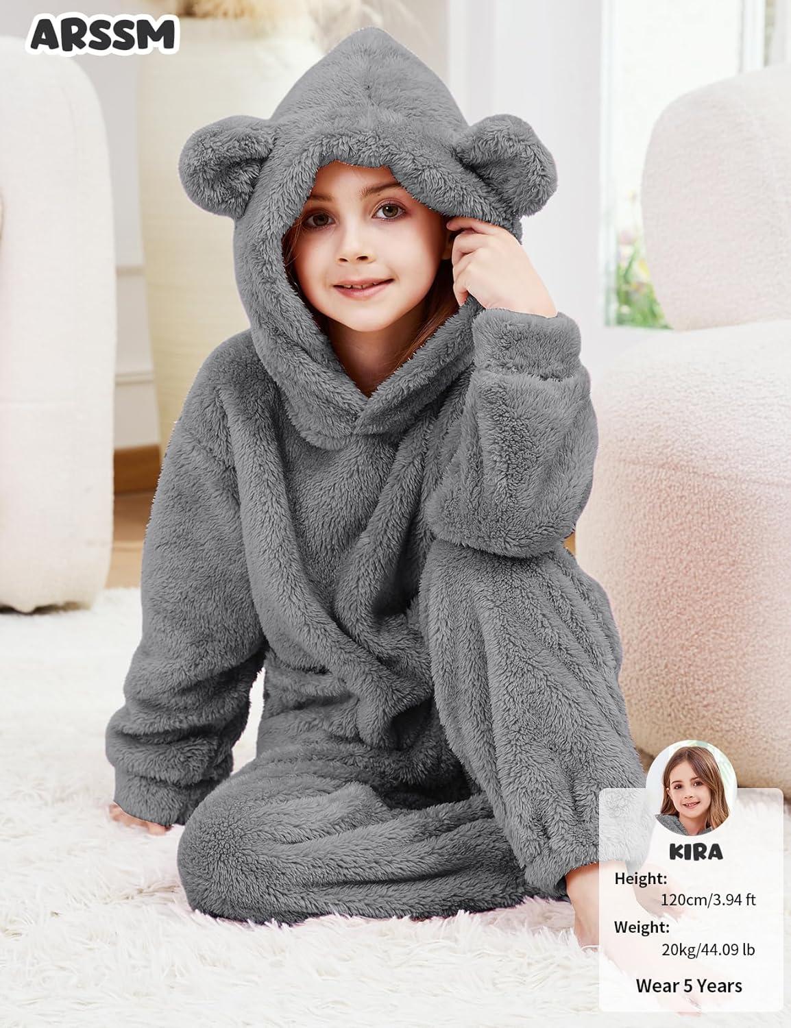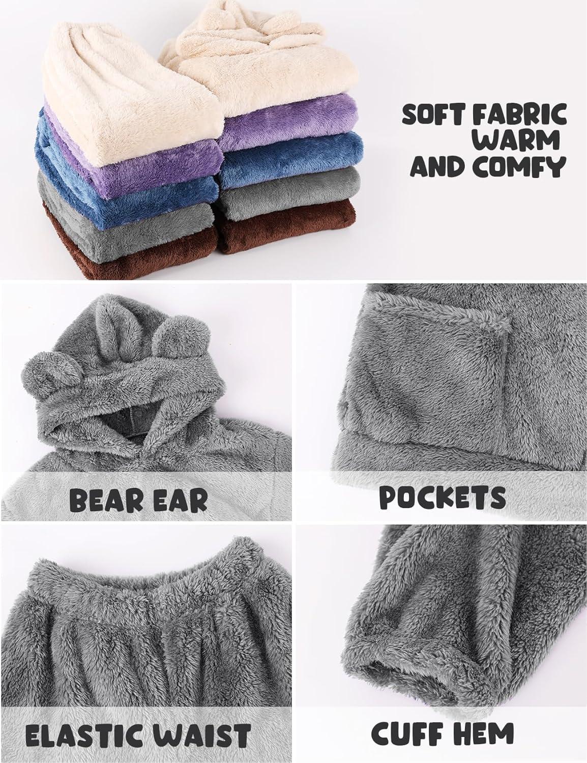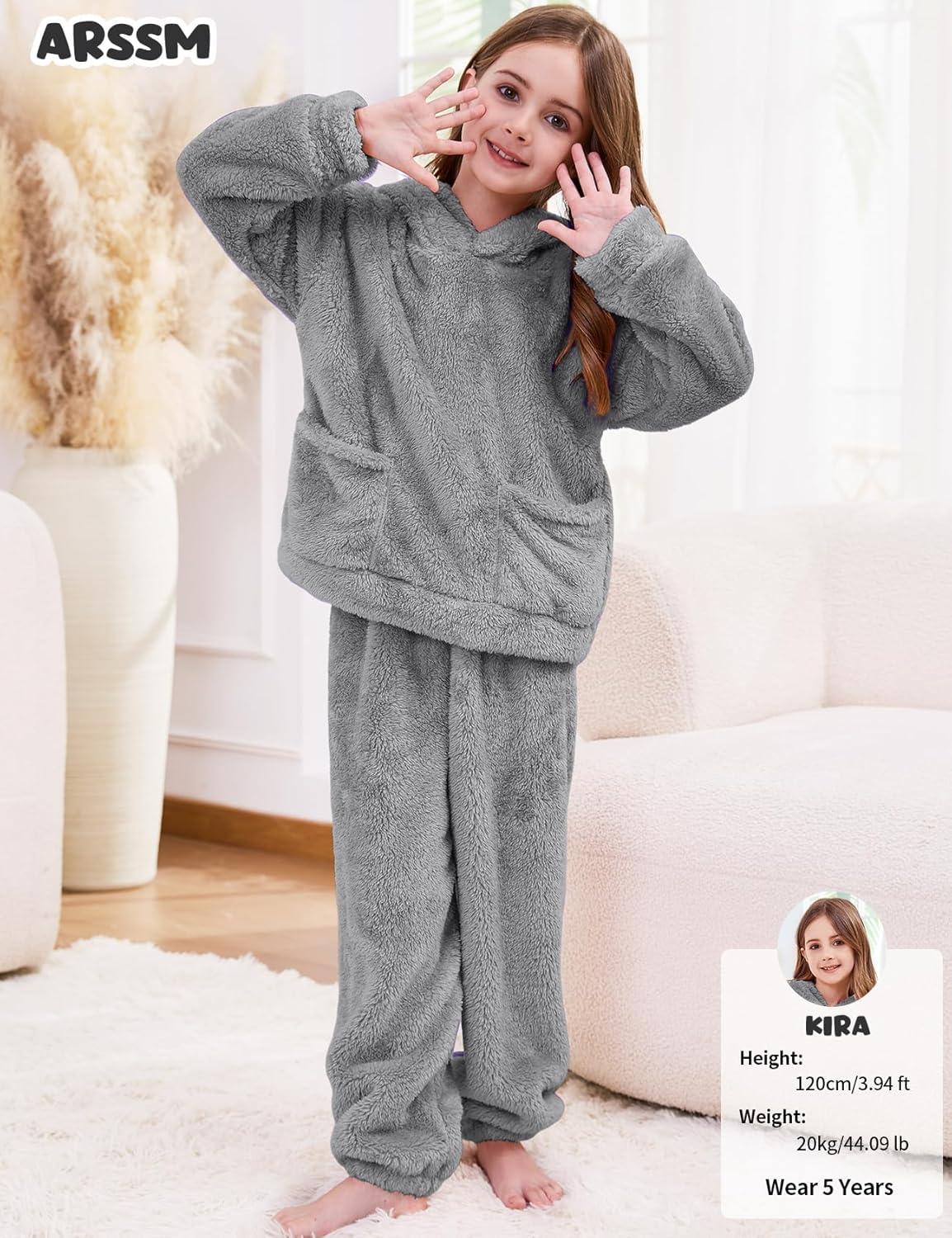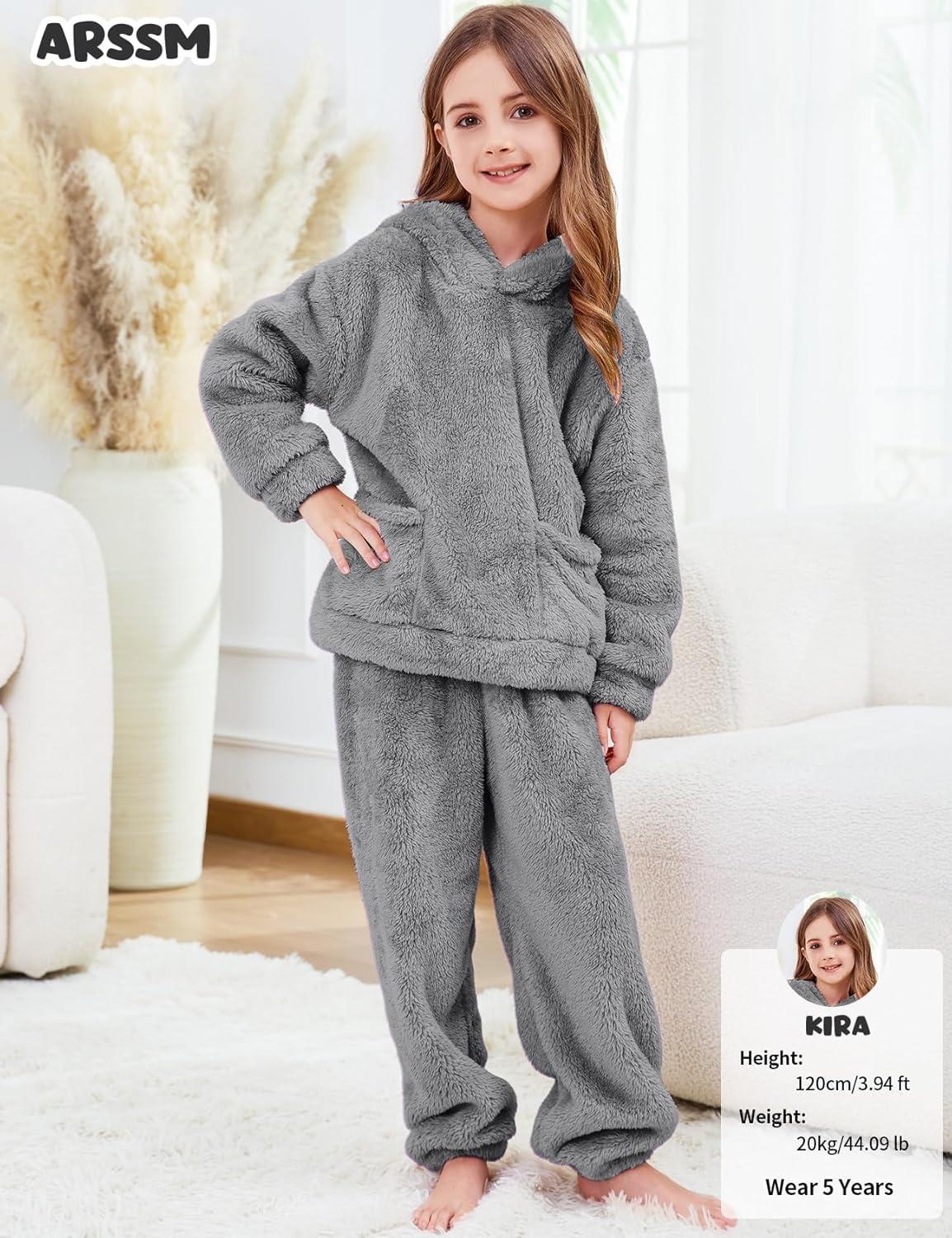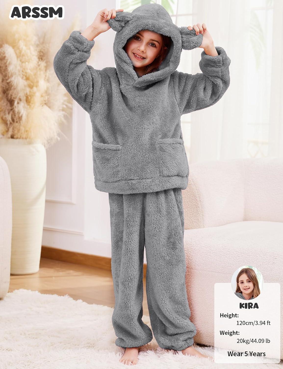 Arssm Girl Pants Sets Two Pieces Outfit Kids Bear Ear Fuzzy Fluffy Hoodie Sweatshirt with Fleece Sweatpants(Grey)