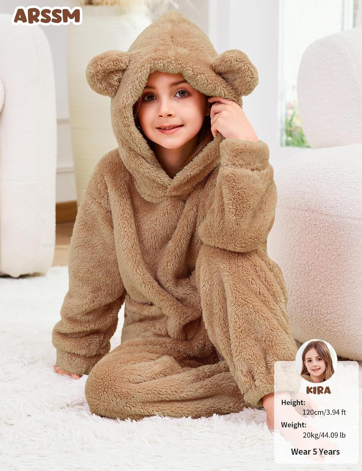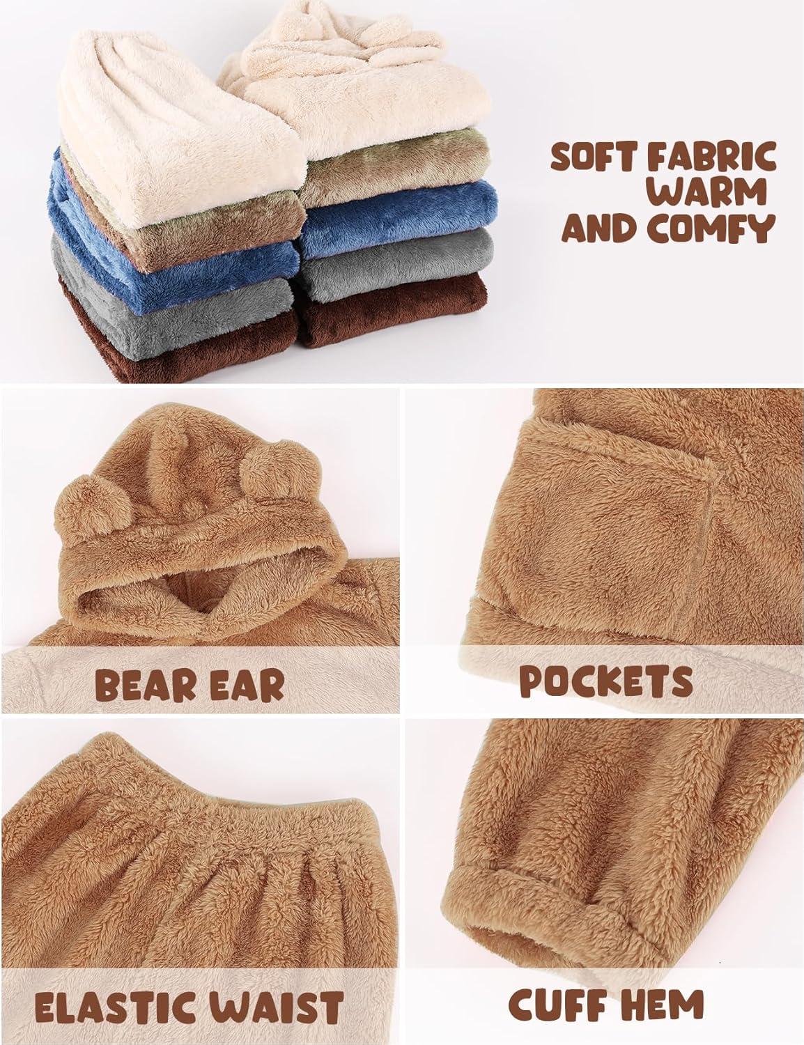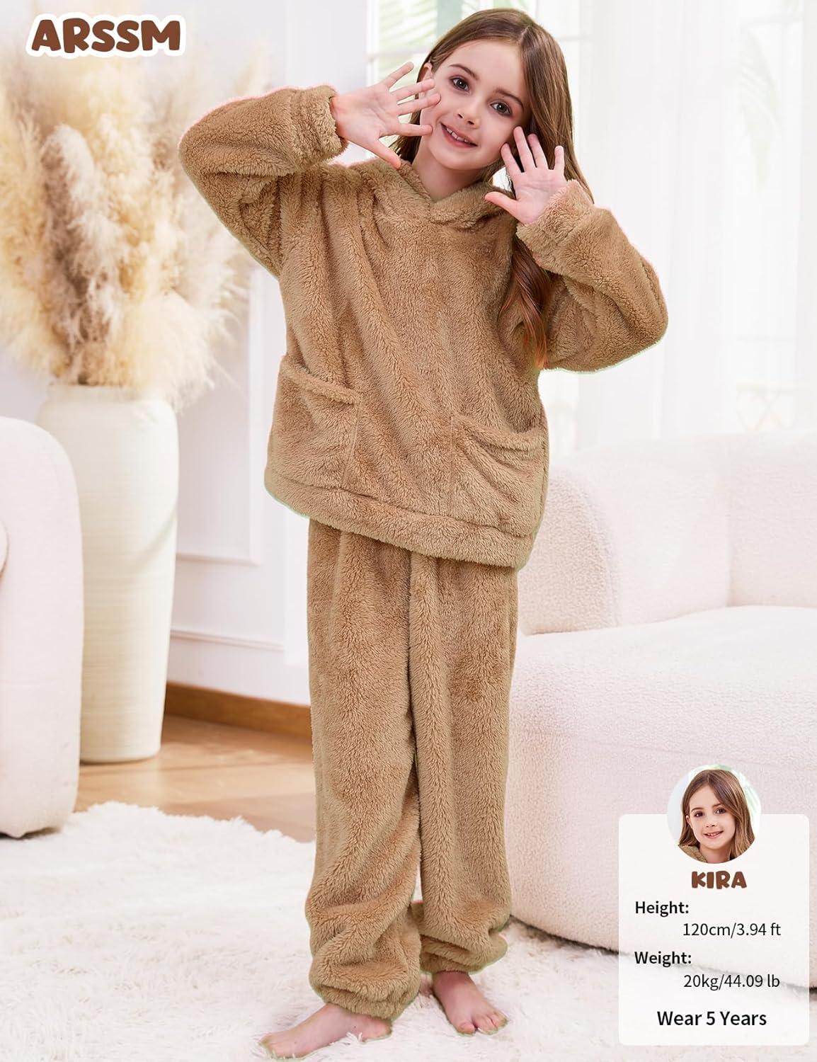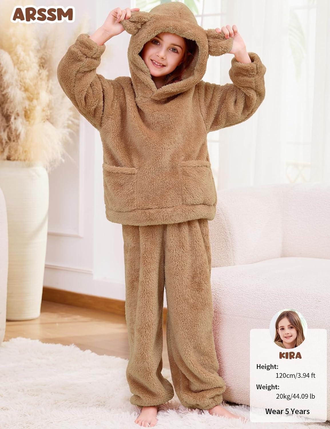 Arssm Girl Pants Sets Two Pieces Outfit Kids Bear Ear Fuzzy Fluffy Hoodie Sweatshirt with Fleece Sweatpants(Khaki)