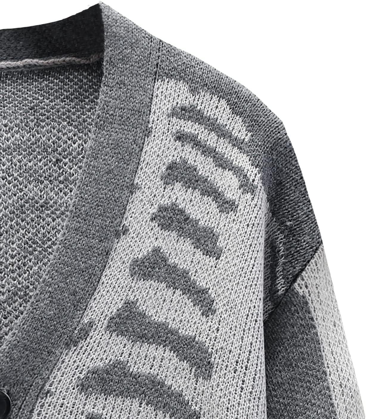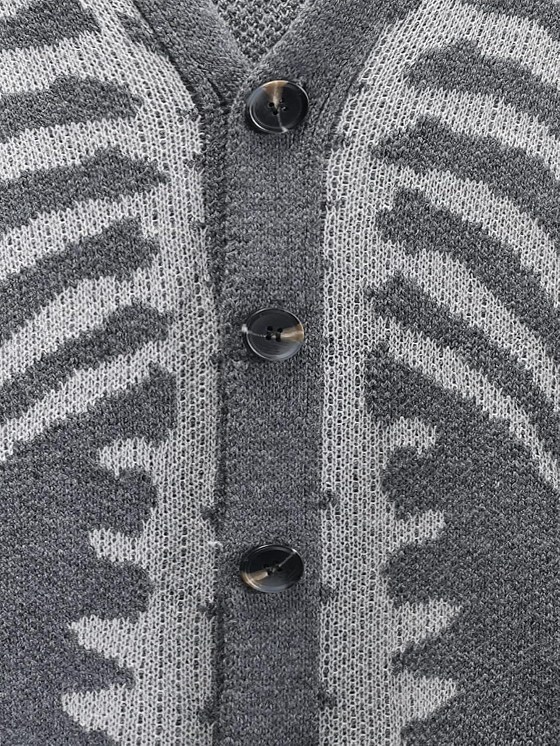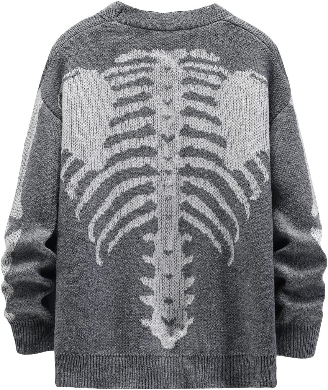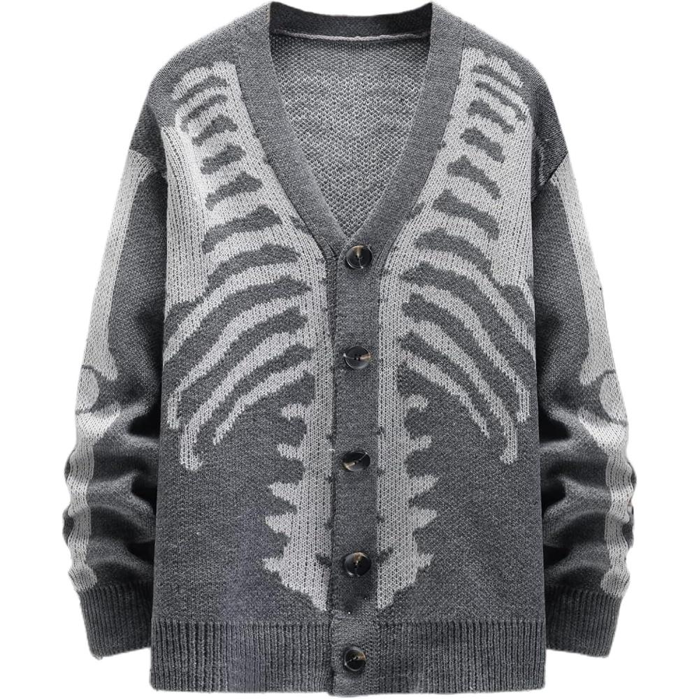 Arssm Men Skeleton Cardigan Sweater Oversized Fall Graphic Long Sleeve Knit Y2K Button Down V Neck Sweater Outwear(Grey)