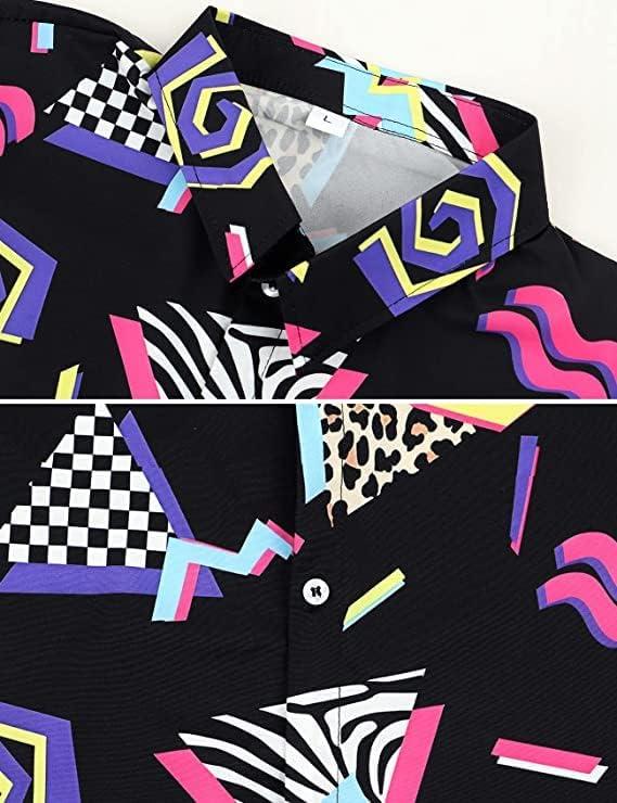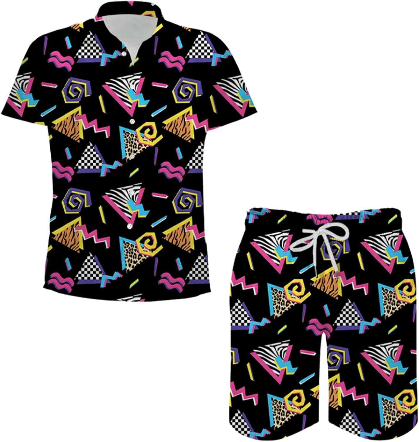 Arssm Mens 2 Pieces Vintage Shirts and Shorts Set 80s 90s Outfit Button Down Beach Suit Quick Dry for Vintage Halloween Party(Black)
