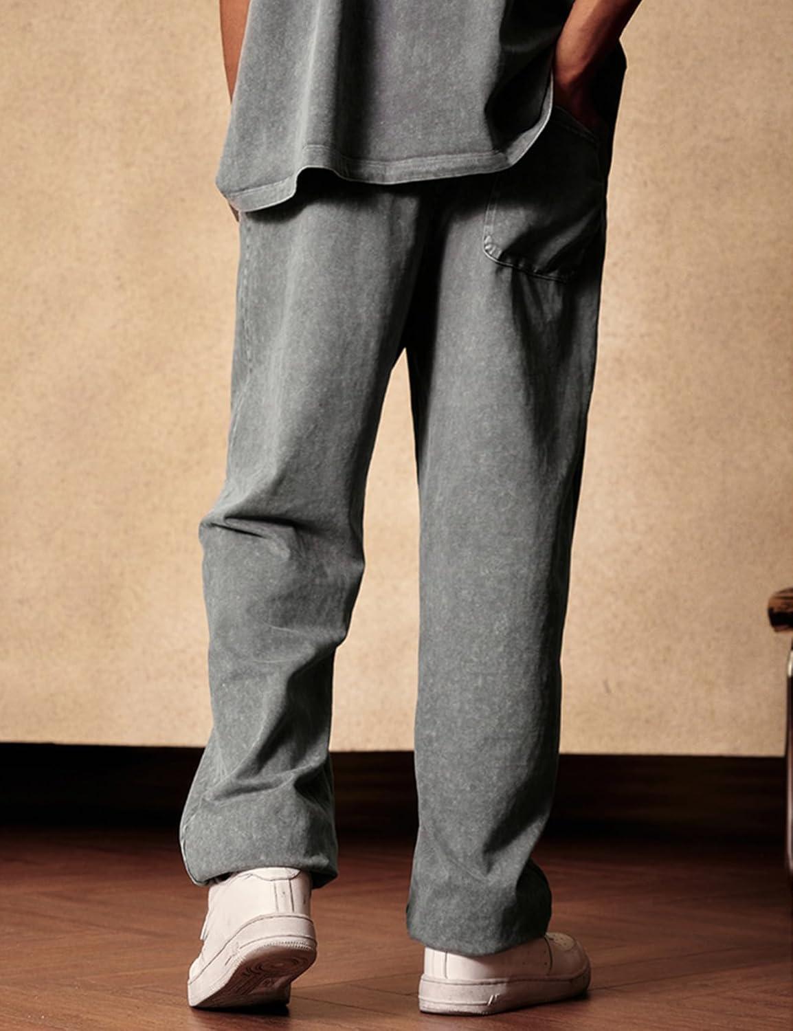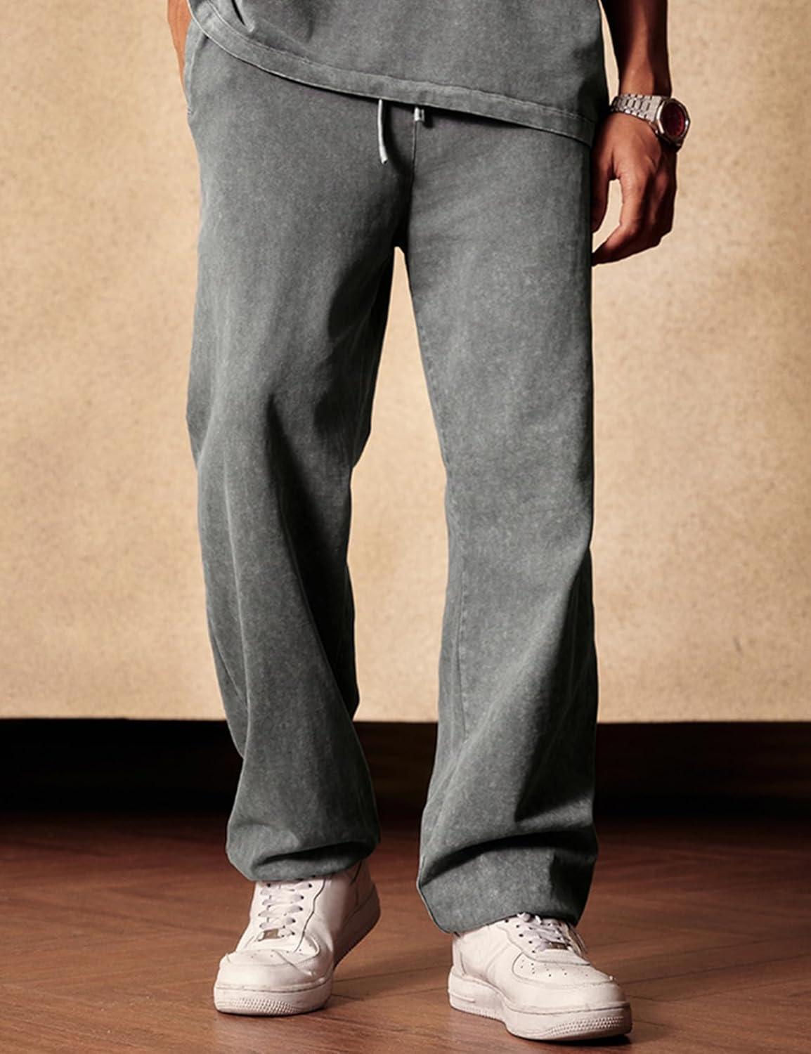 Arssm Mens Acid Wash Athletic Sweatpants Elastic Waist Joggers Drawstring Jogger Pants Workout Long Pants(Grey)