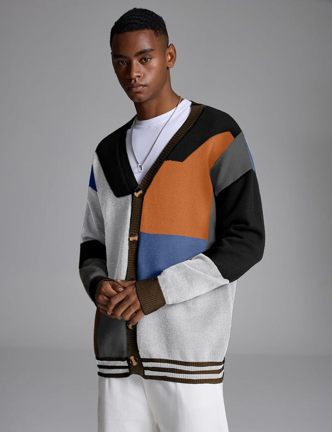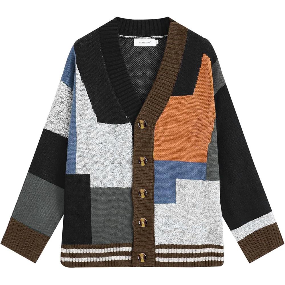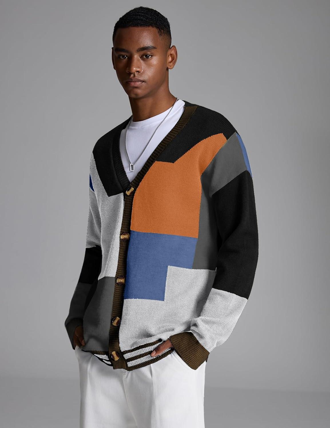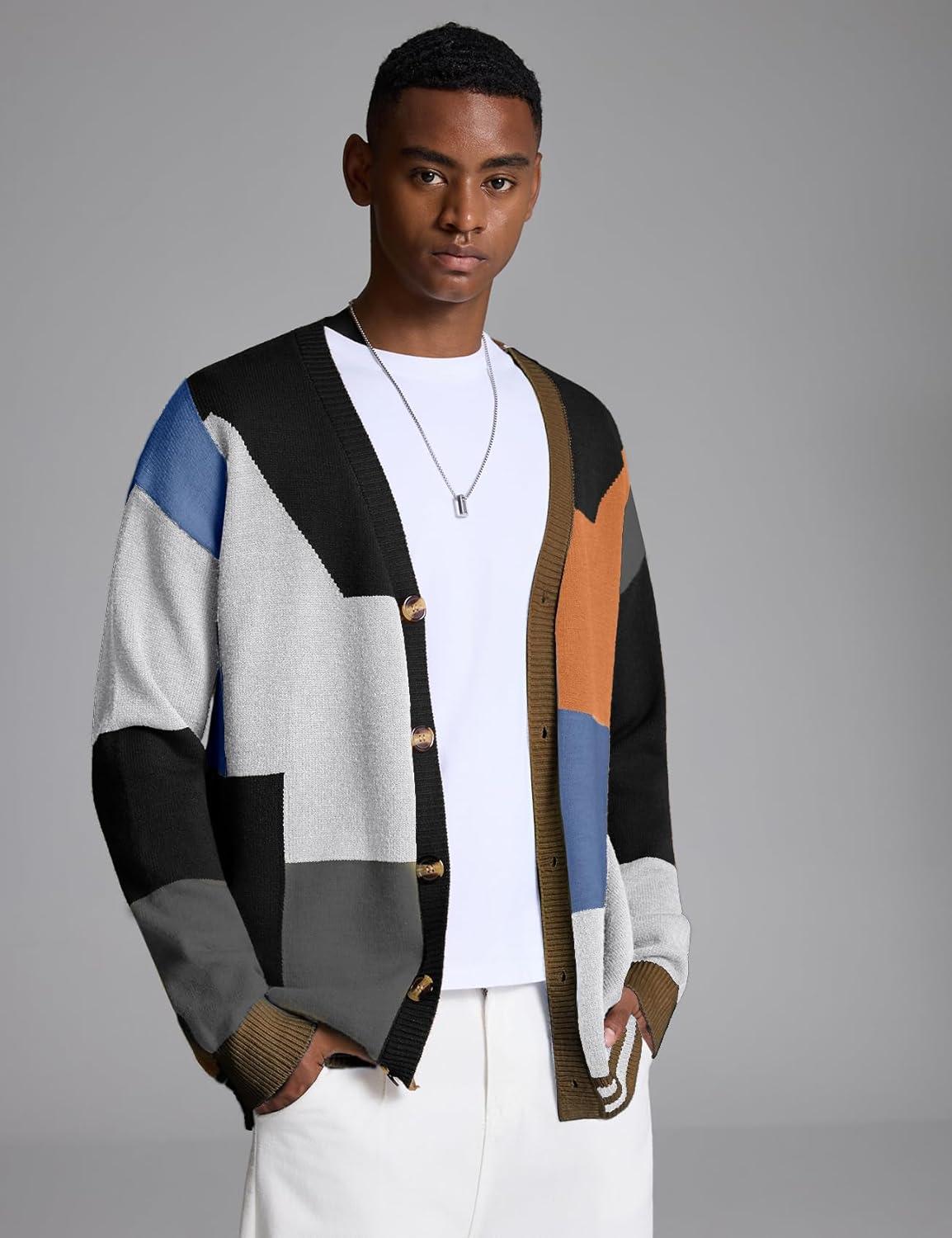 Arssm Mens Cardigan Sweater Knitted Long Sleeve V Neck Button Down Sweaters Casual Cardigans(Black)