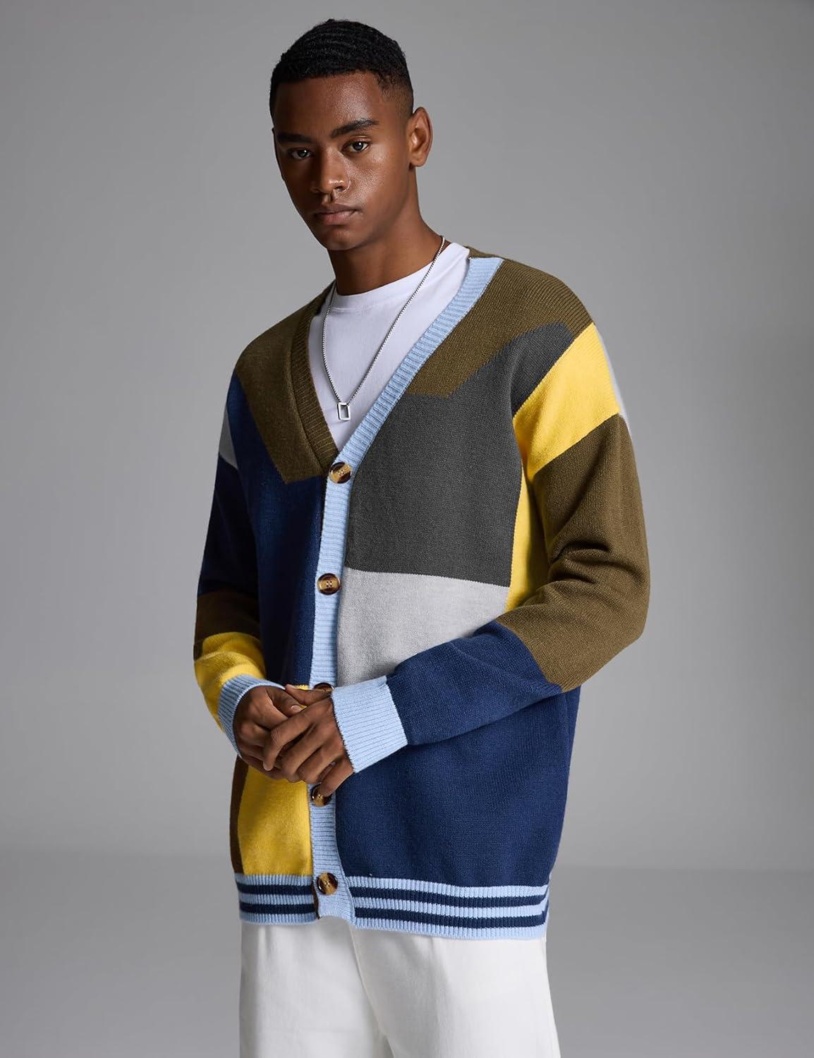 Arssm Mens Cardigan Sweater Knitted Long Sleeve V Neck Button Down Sweaters Casual Cardigans(Khaki)