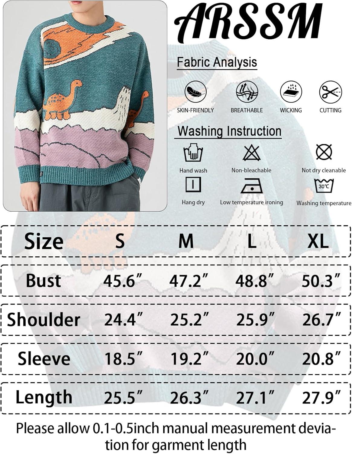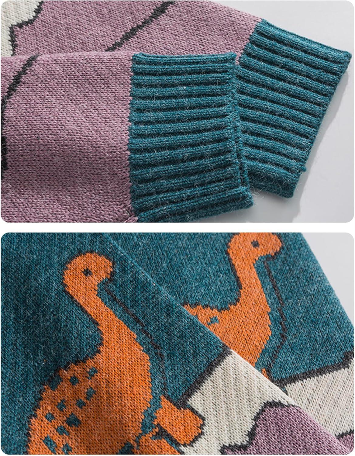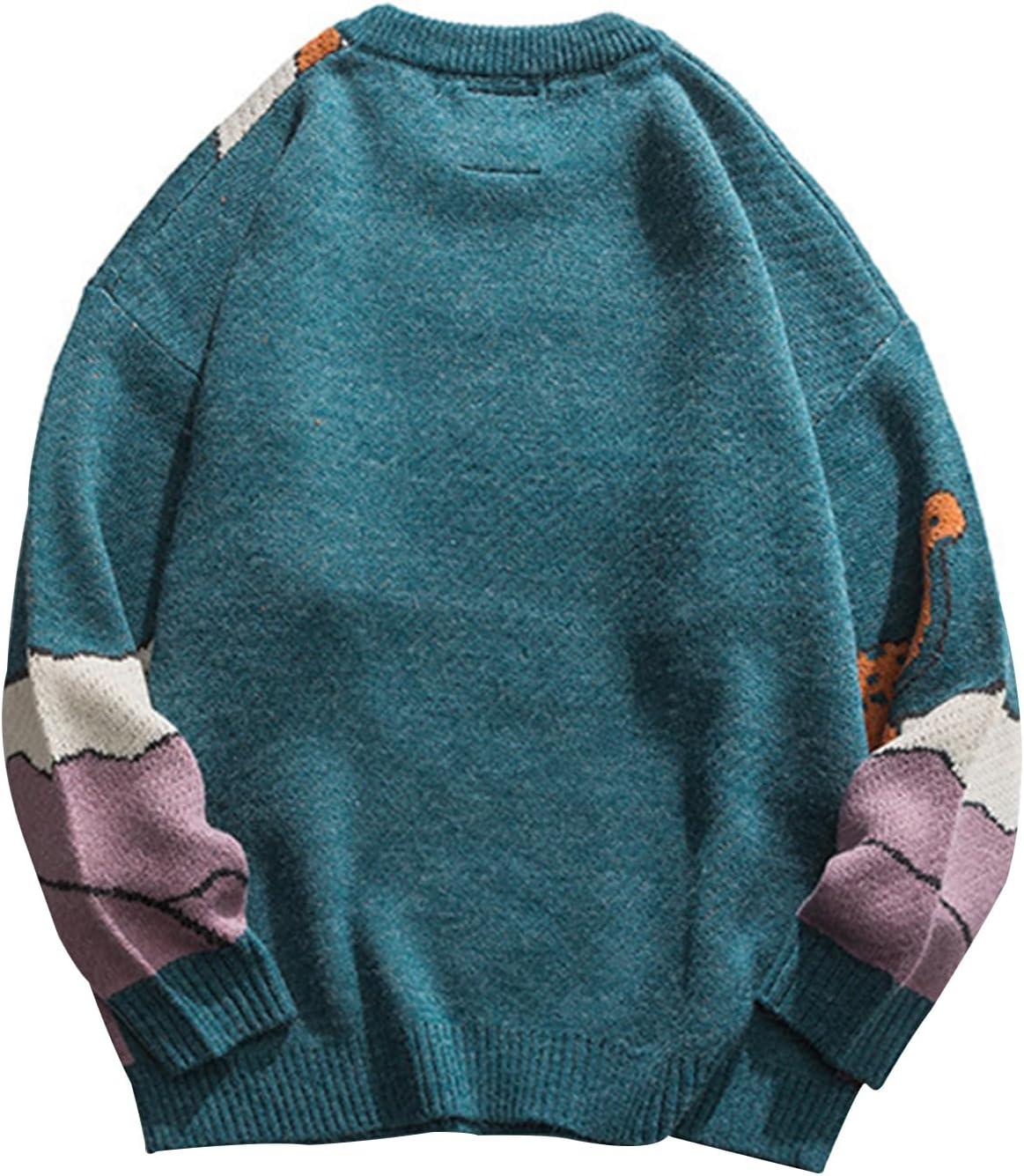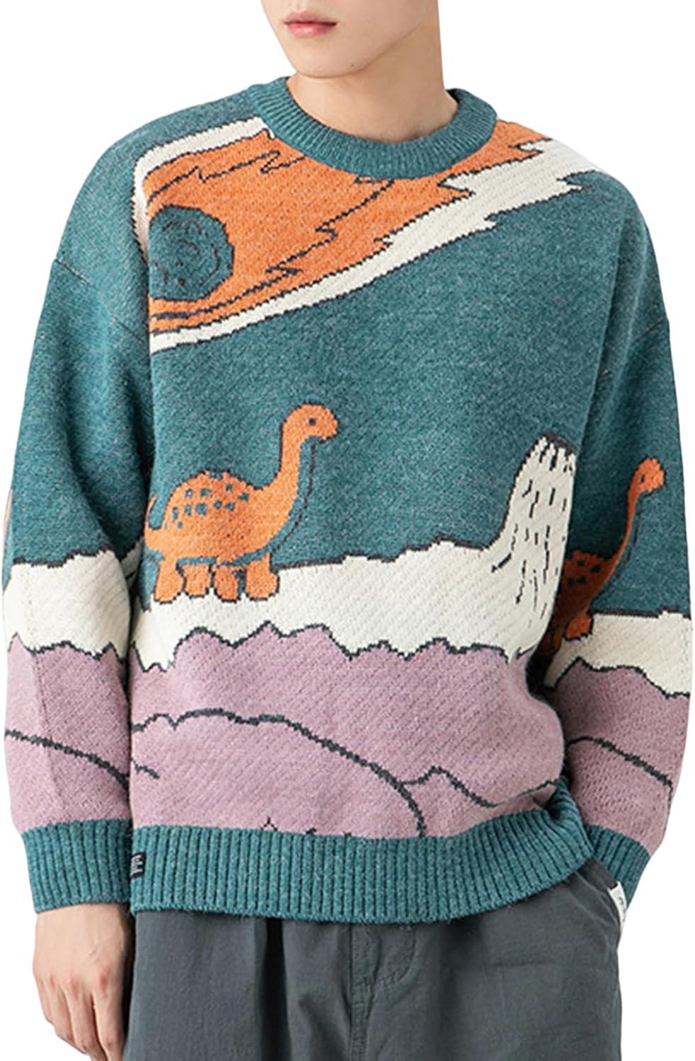 Arssm Mens Oversized Dinosaur Knit Pullover Sweater Fashion Cartoon Unisex Sweater Long Sleeve Crewneck Vintage Tops(Blue)