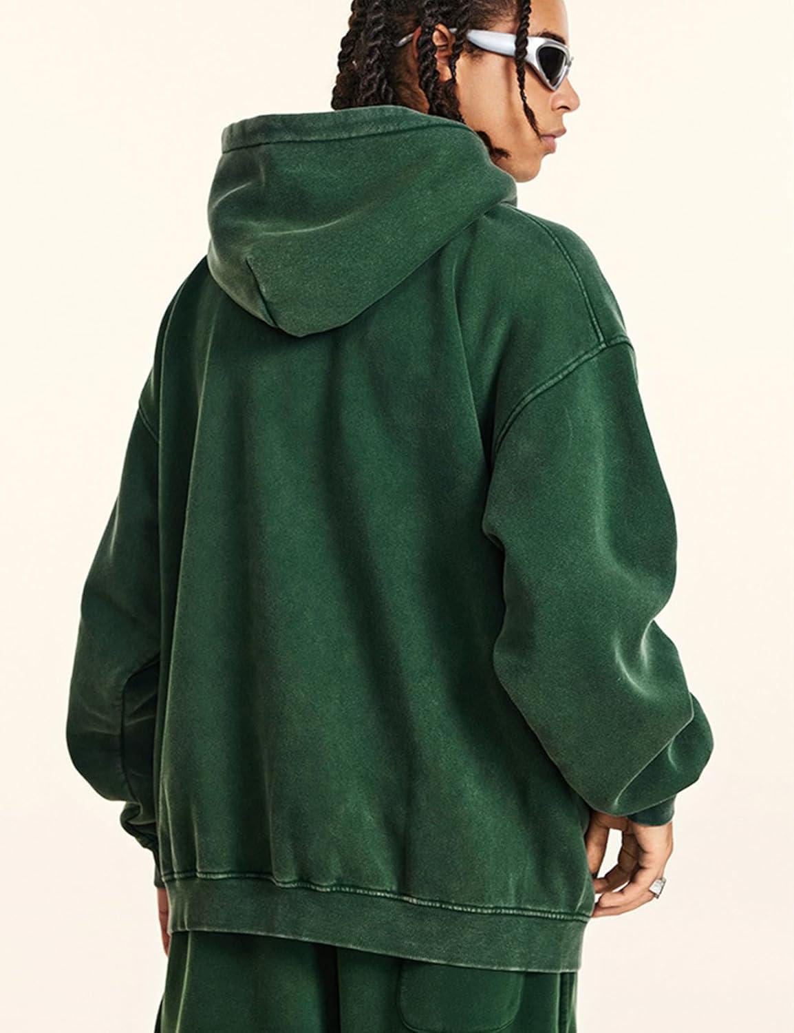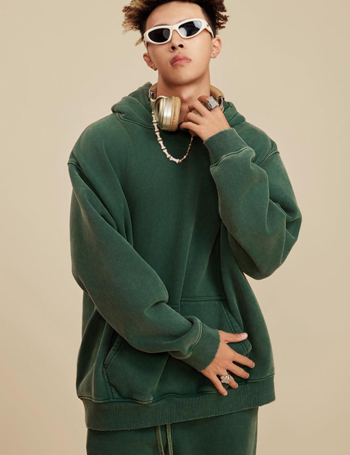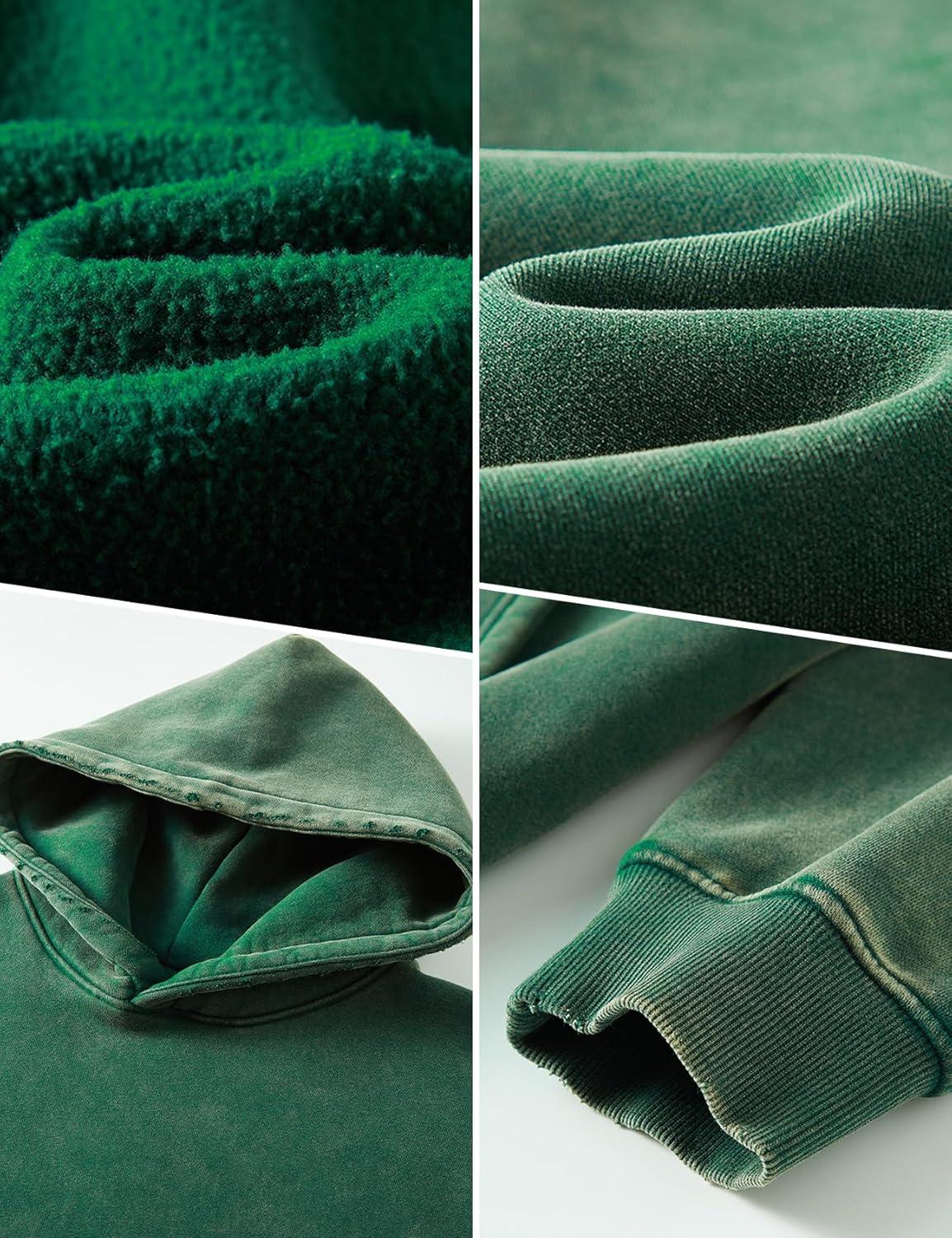 Arssm Mens Oversized Hoodie Acid Wash Pullover Vintage Cotton Heavyweight Sweatshirt Fleece Hoodie Men Streetwear(Green-M)