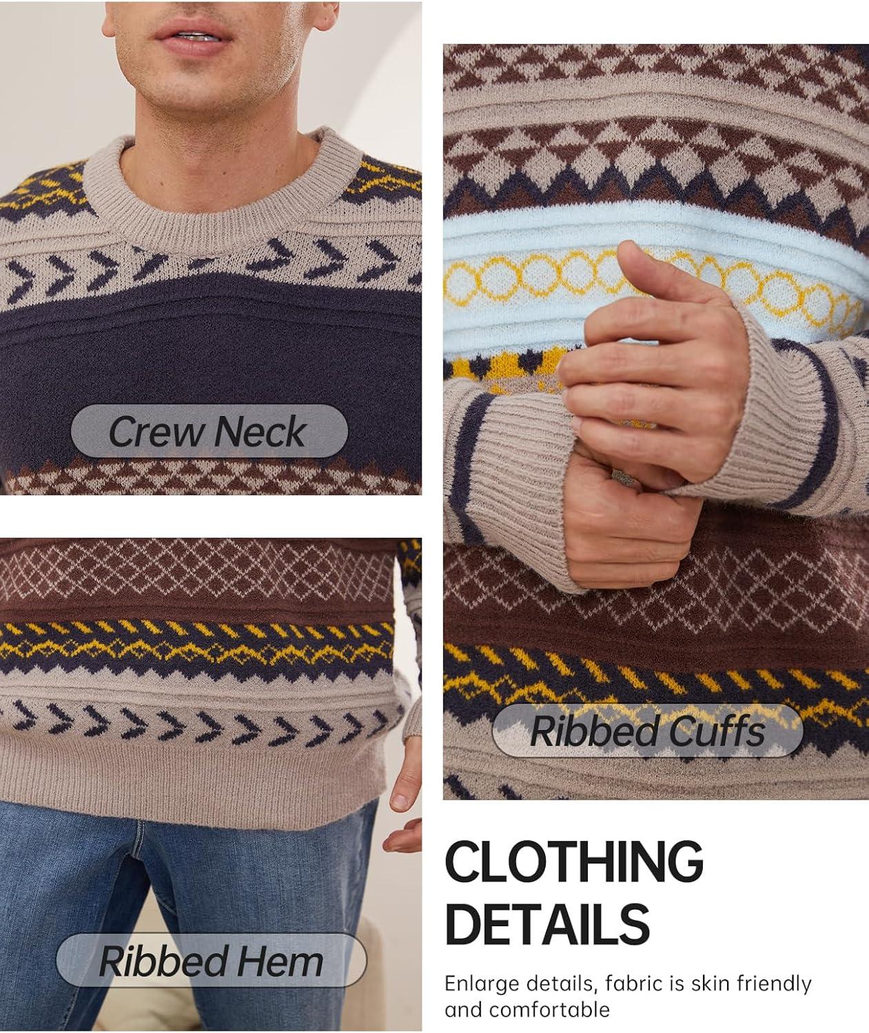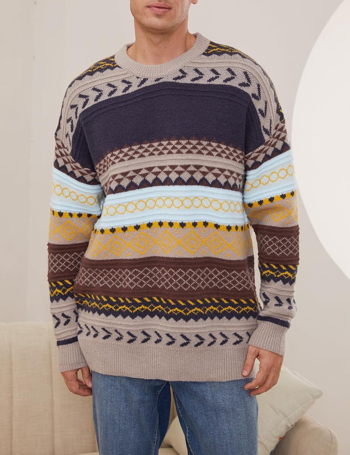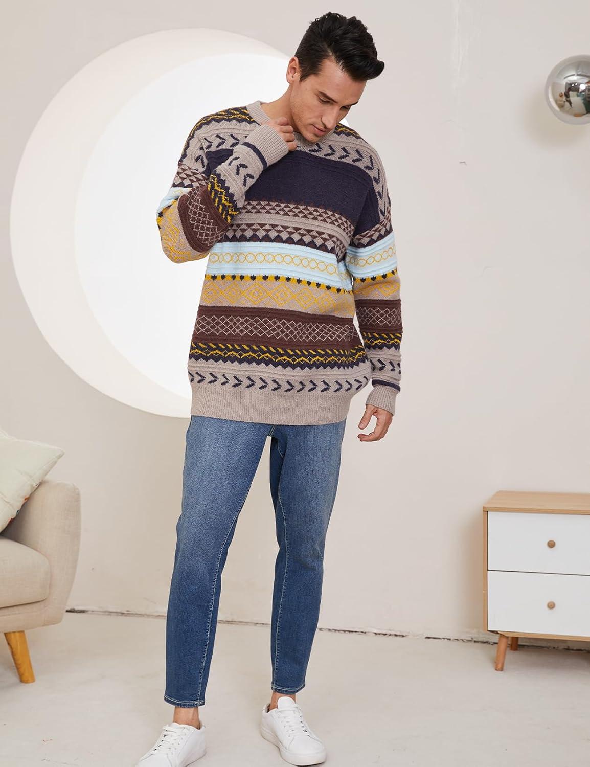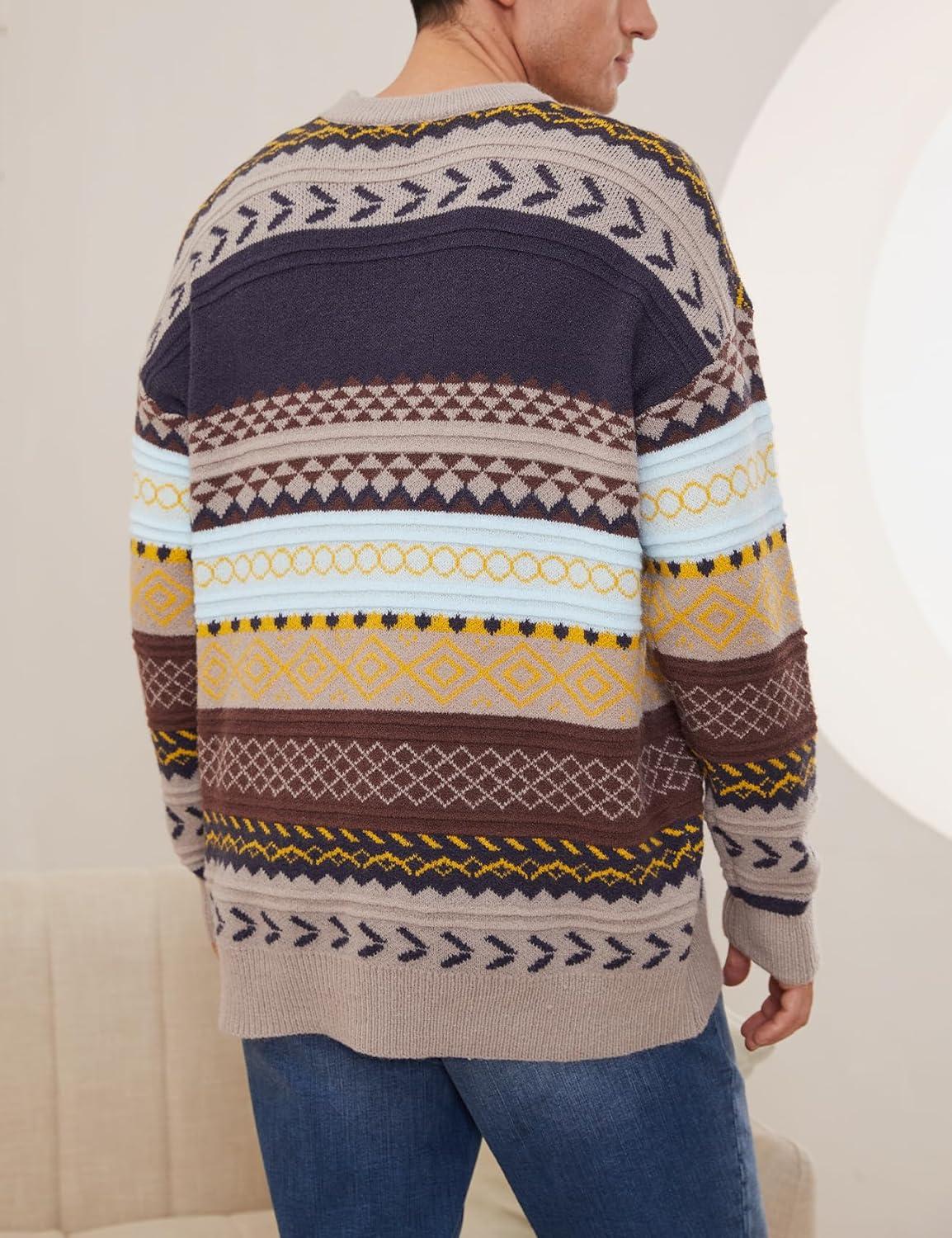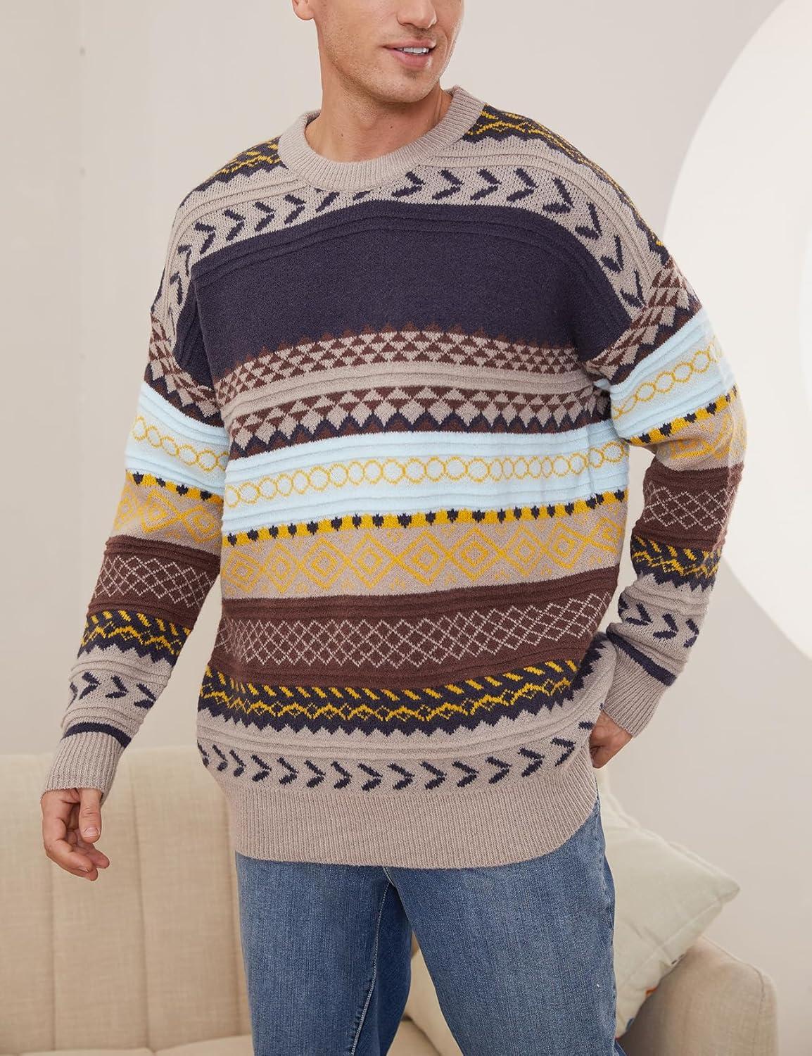Arssm Mens Vintage Sweater Grandpa Oversized Cable Knit Crewneck Pullovers Casual Long Sleeve Striped Sweater(Grey)