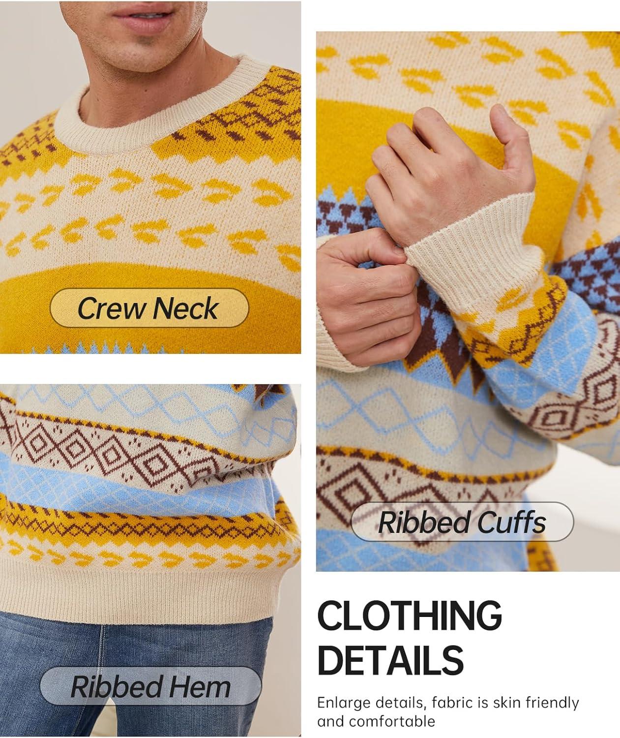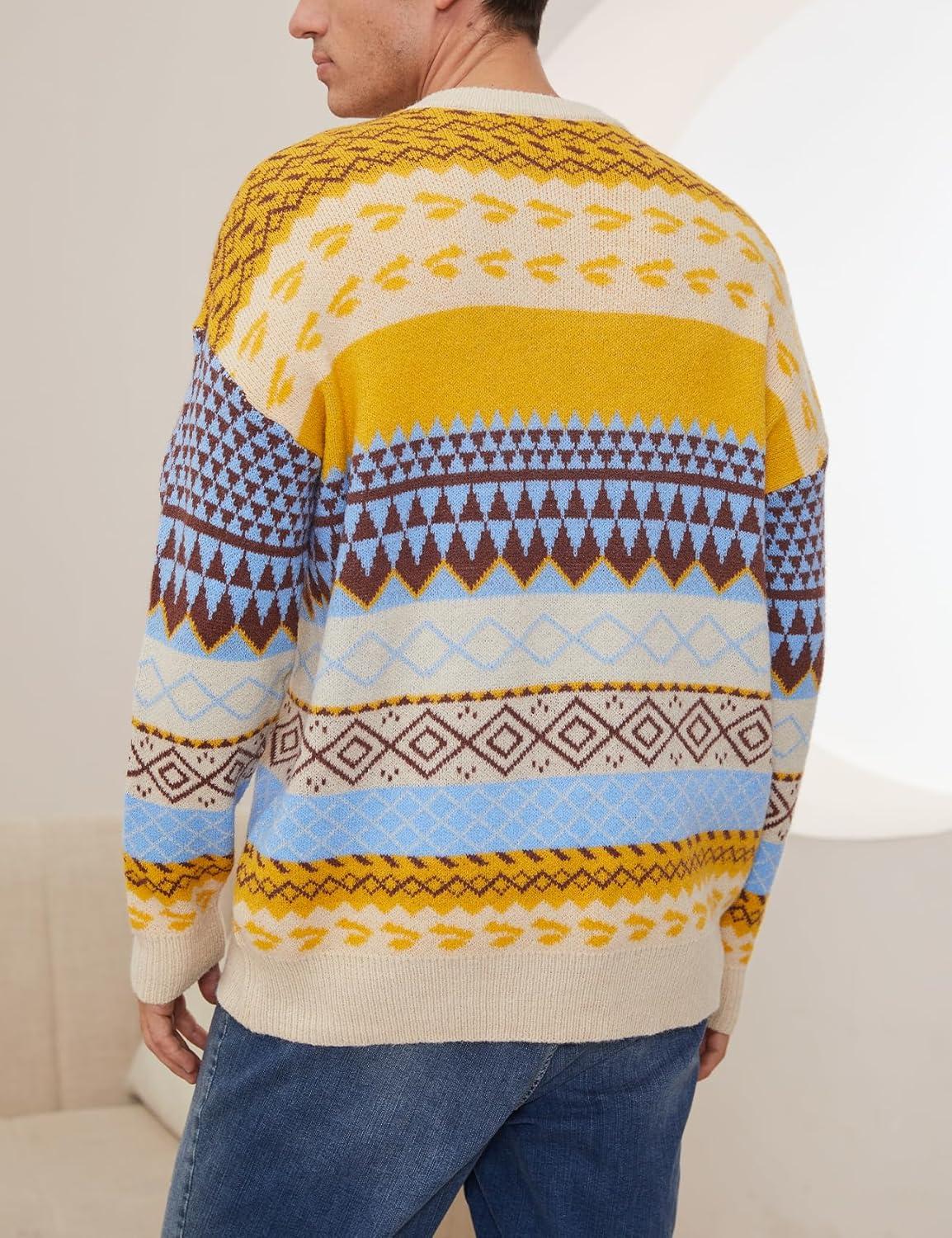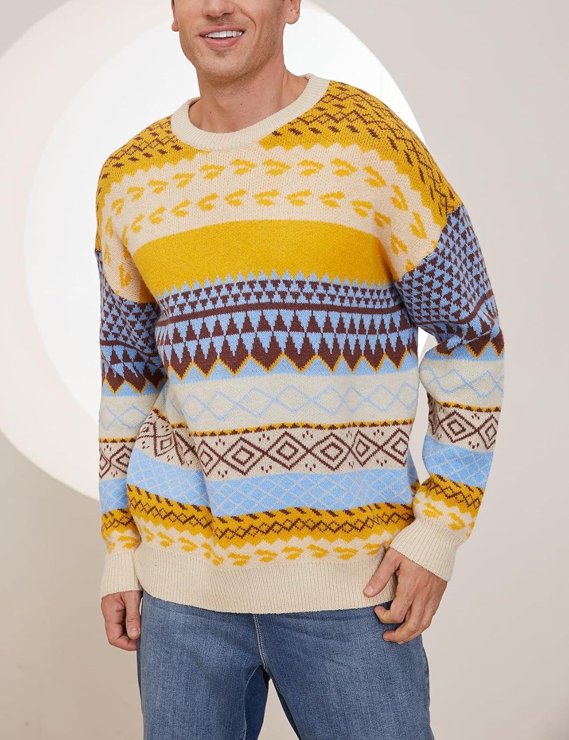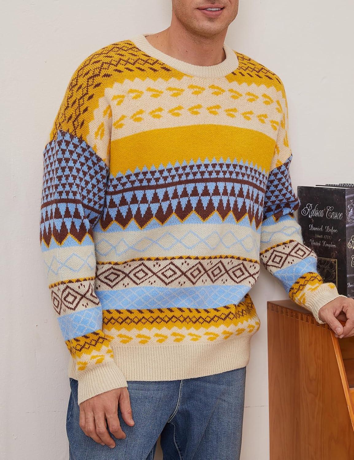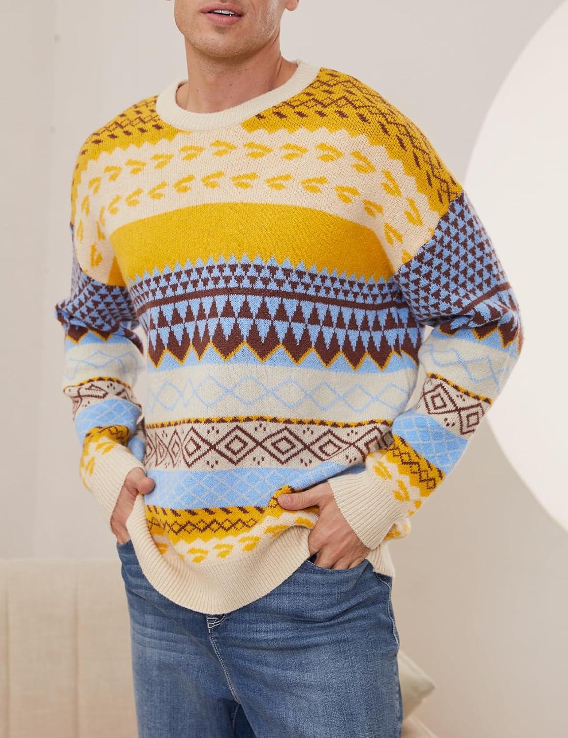 Arssm Mens Vintage Sweater Grandpa Oversized Cable Knit Crewneck Pullovers Casual Long Sleeve Striped Sweater(Yellow)
