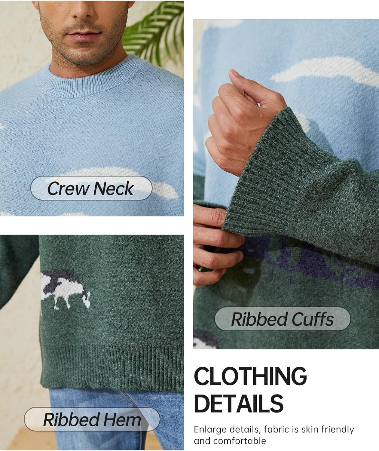 Arssm Mens Vintage Sweater Grandpa y2k Oversized Casual Cable Knit Sweater Pullover Graphic Crewneck Tops(Grey)