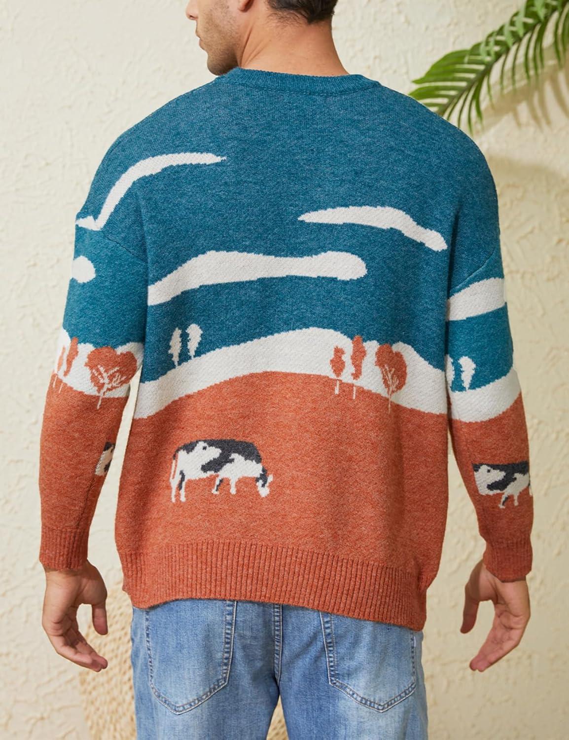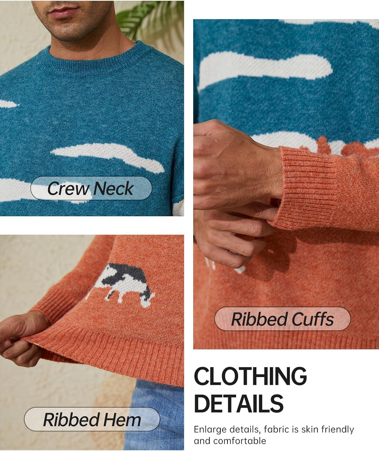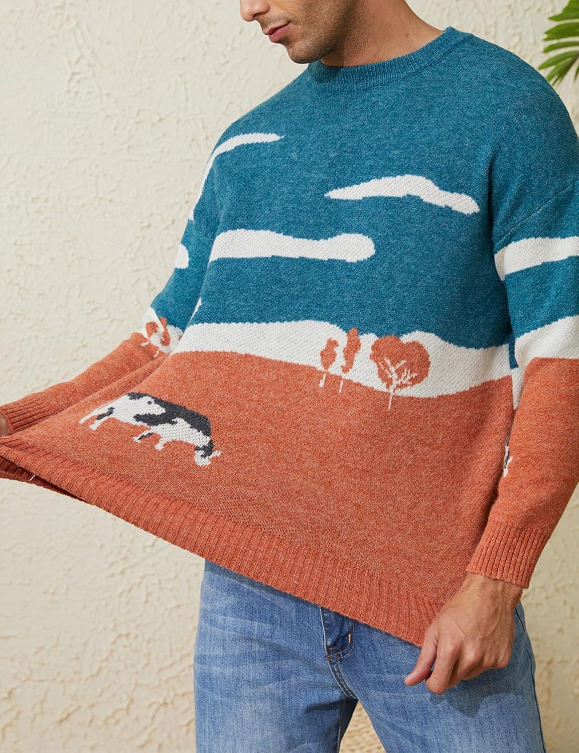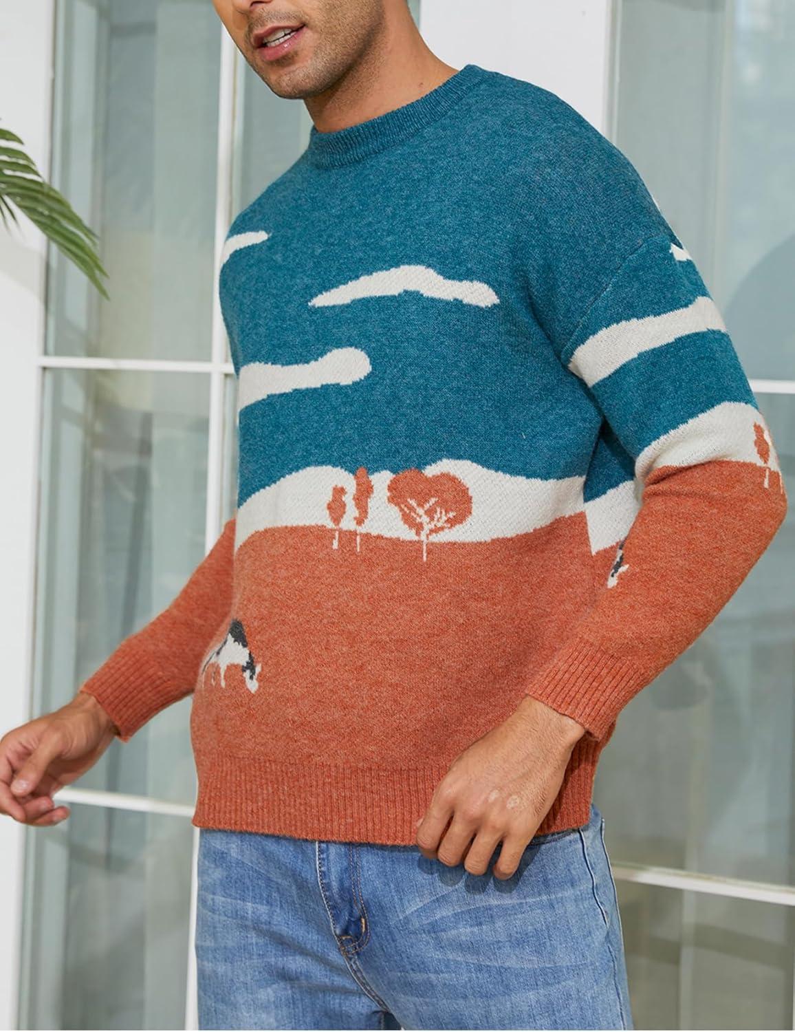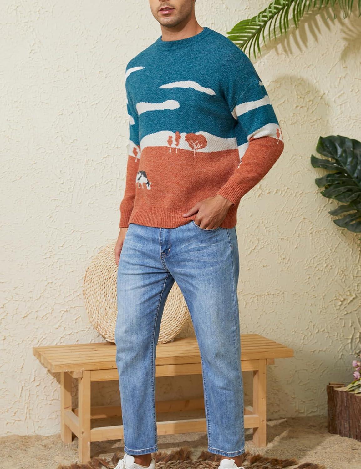 Arssm Mens Vintage Sweater Grandpa y2k Oversized Casual Cable Knit Sweater Pullover Graphic Crewneck Tops(Orange)
