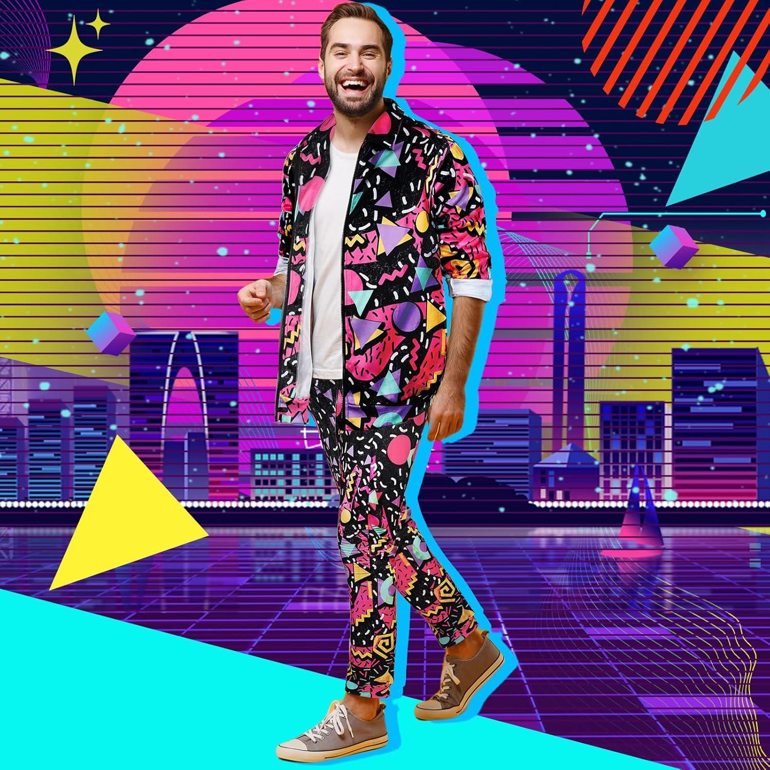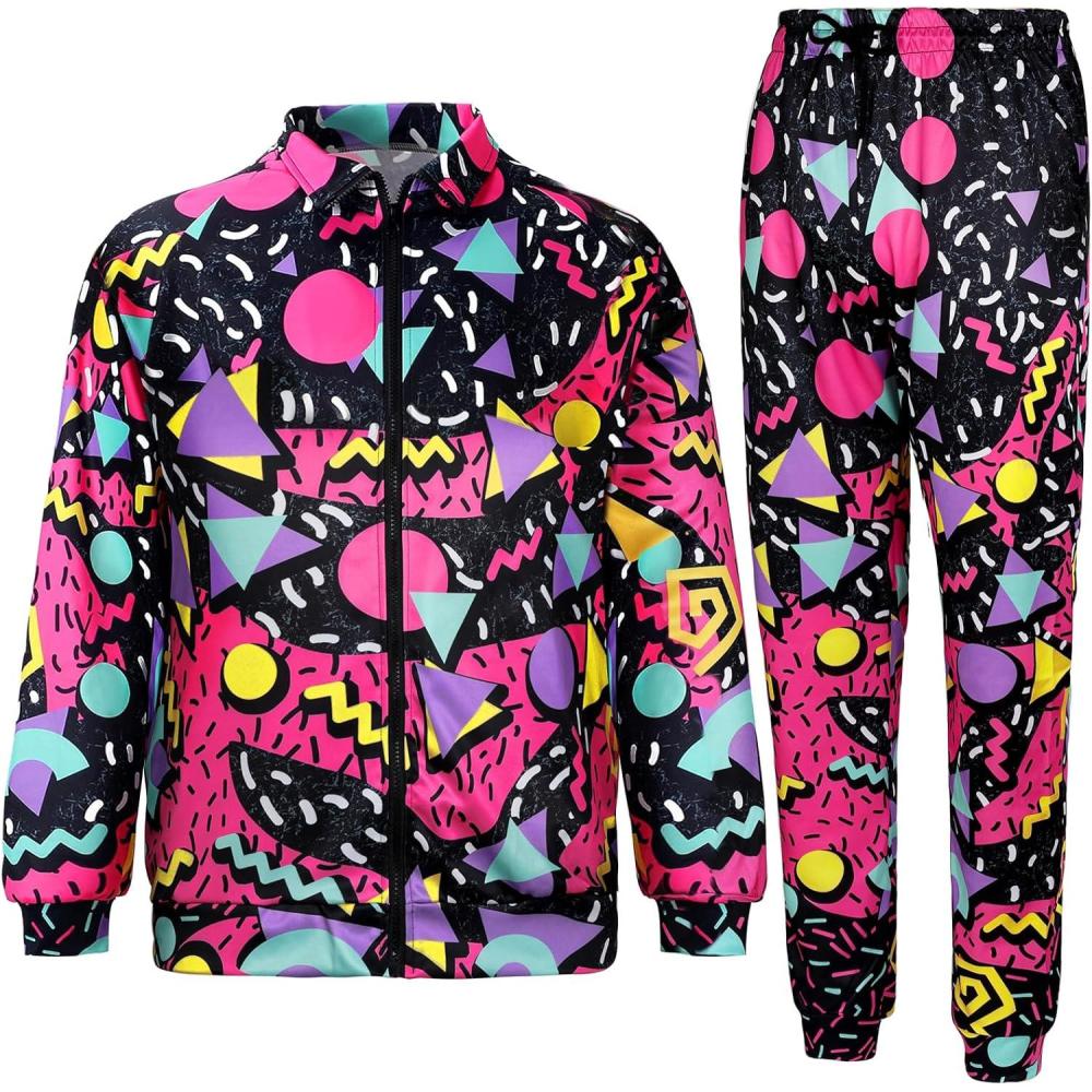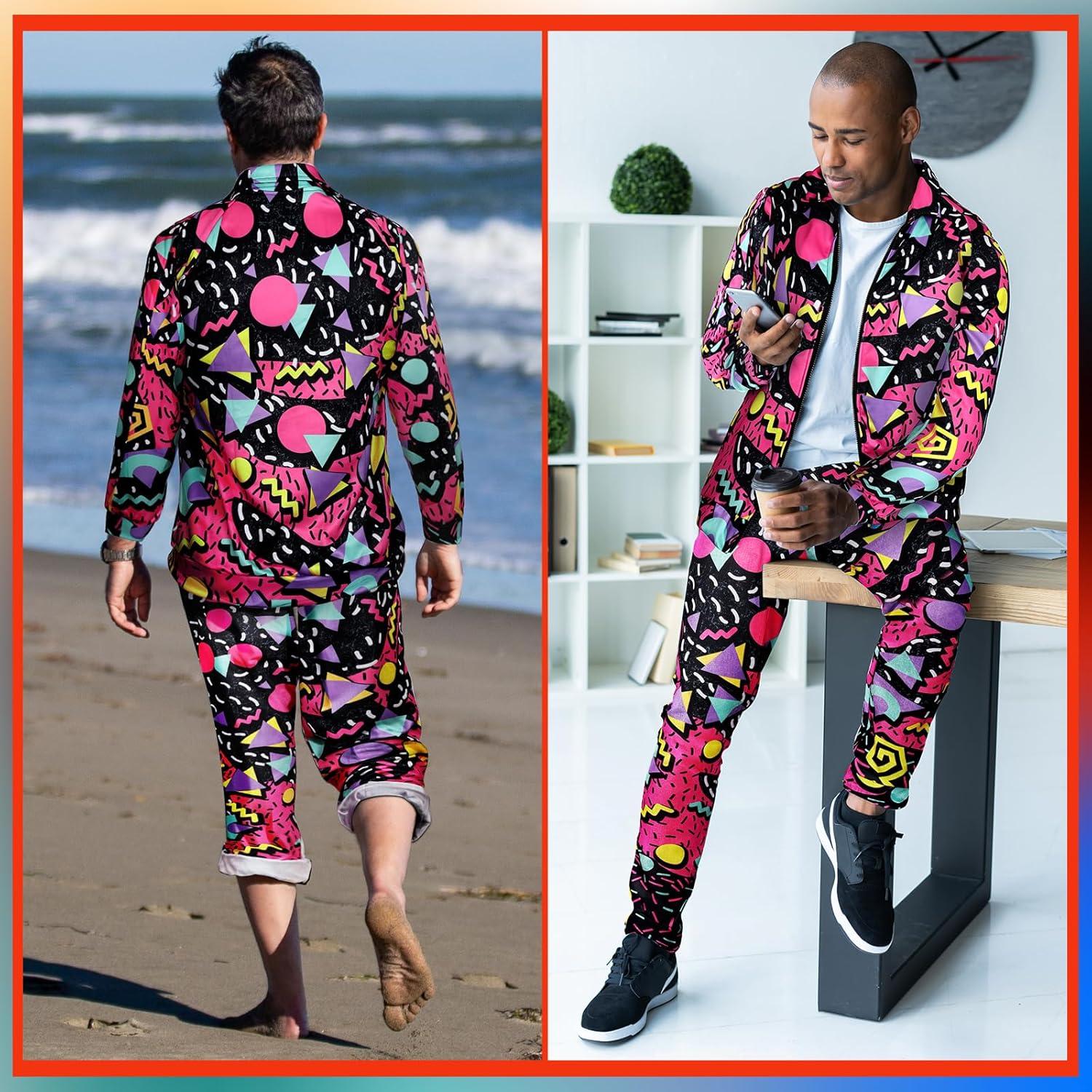 Arssm Retro 80s 90s Outfit Sets for Men Vintage Jacket and Joggers Sweatpants 80s Tracksuit Streetwear(Purple)