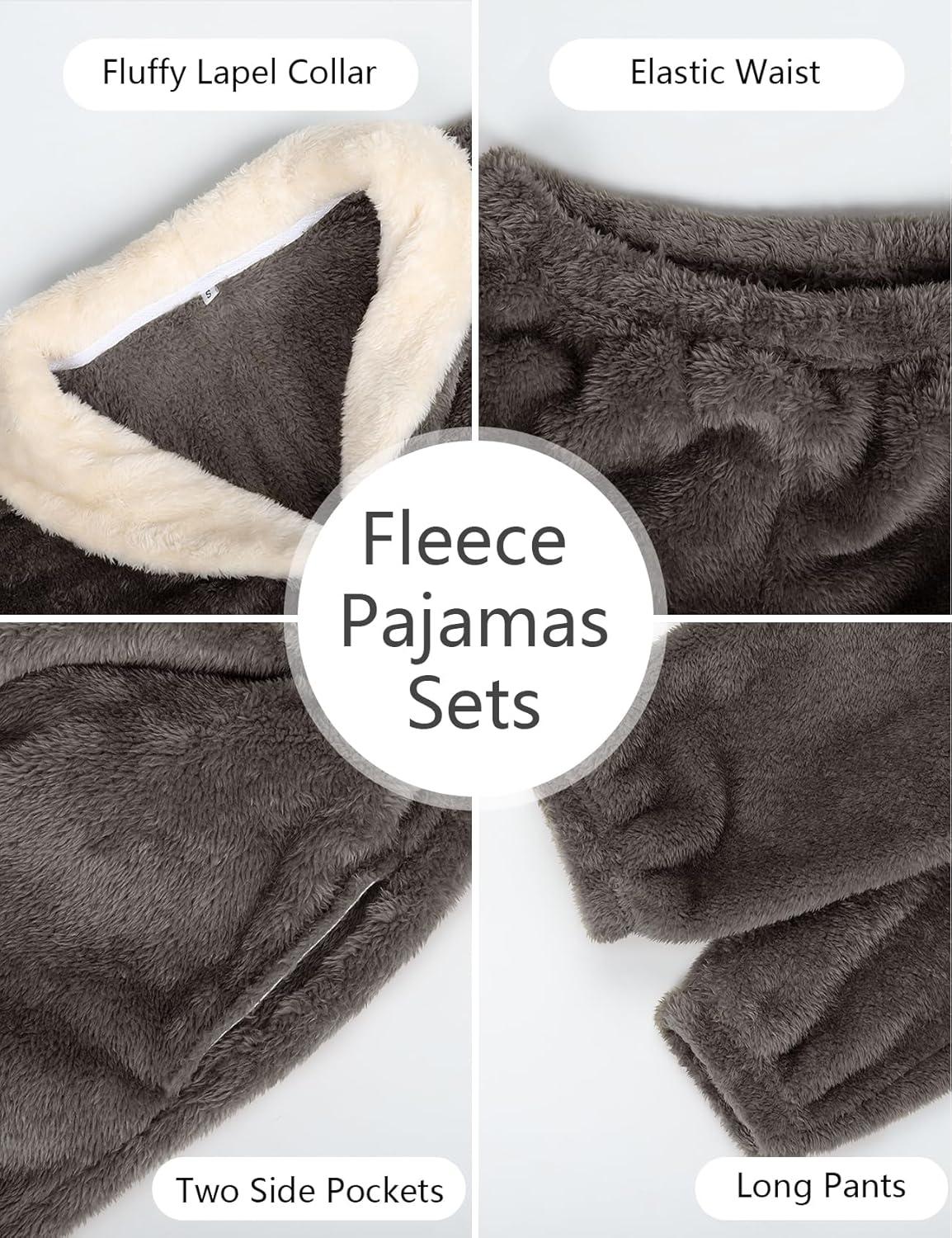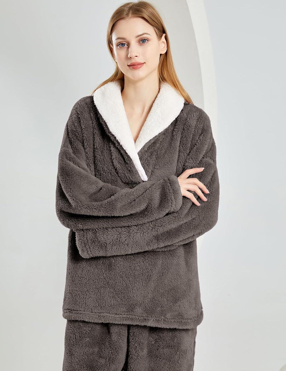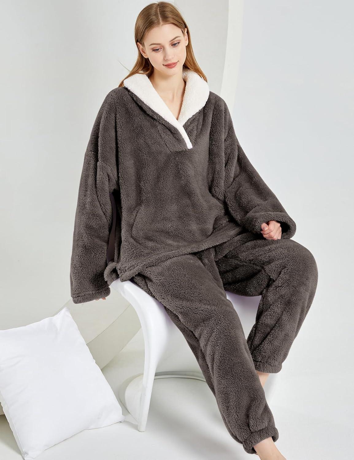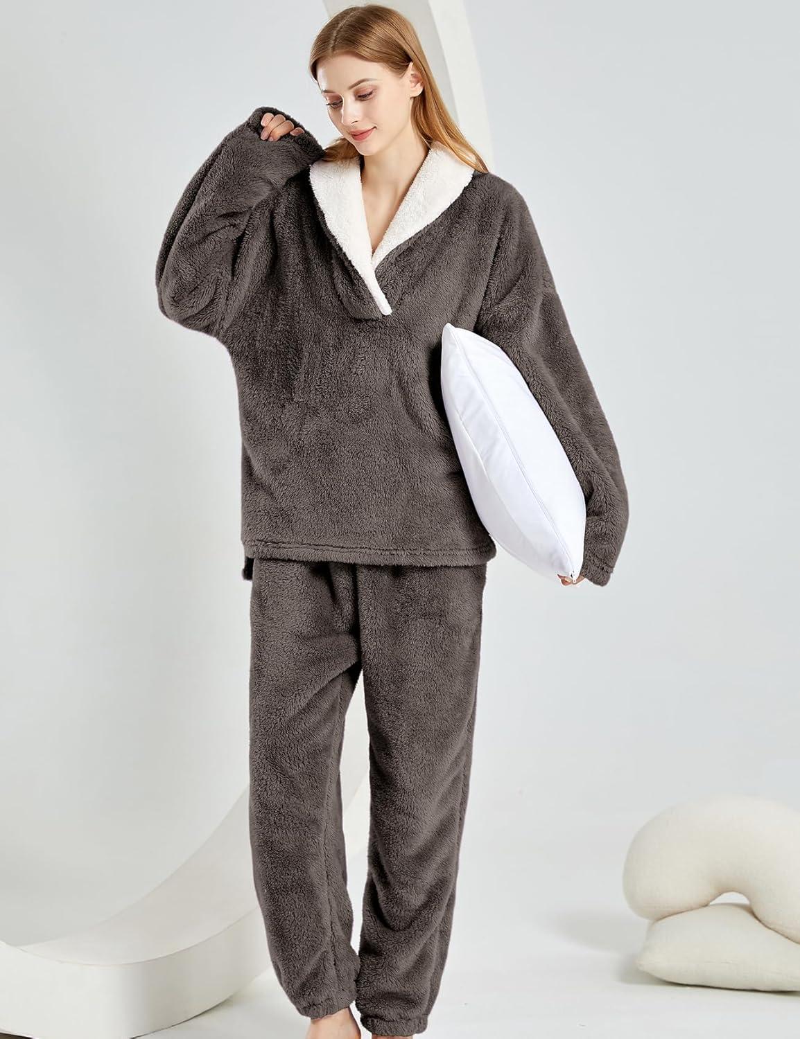 Arssm Women Fluffy Pajamas Set Fleece Pajamas Winter Warm Loose Plush Fuzzy Sets 2 Piece Cozy Sleepwear(Darkgrey)