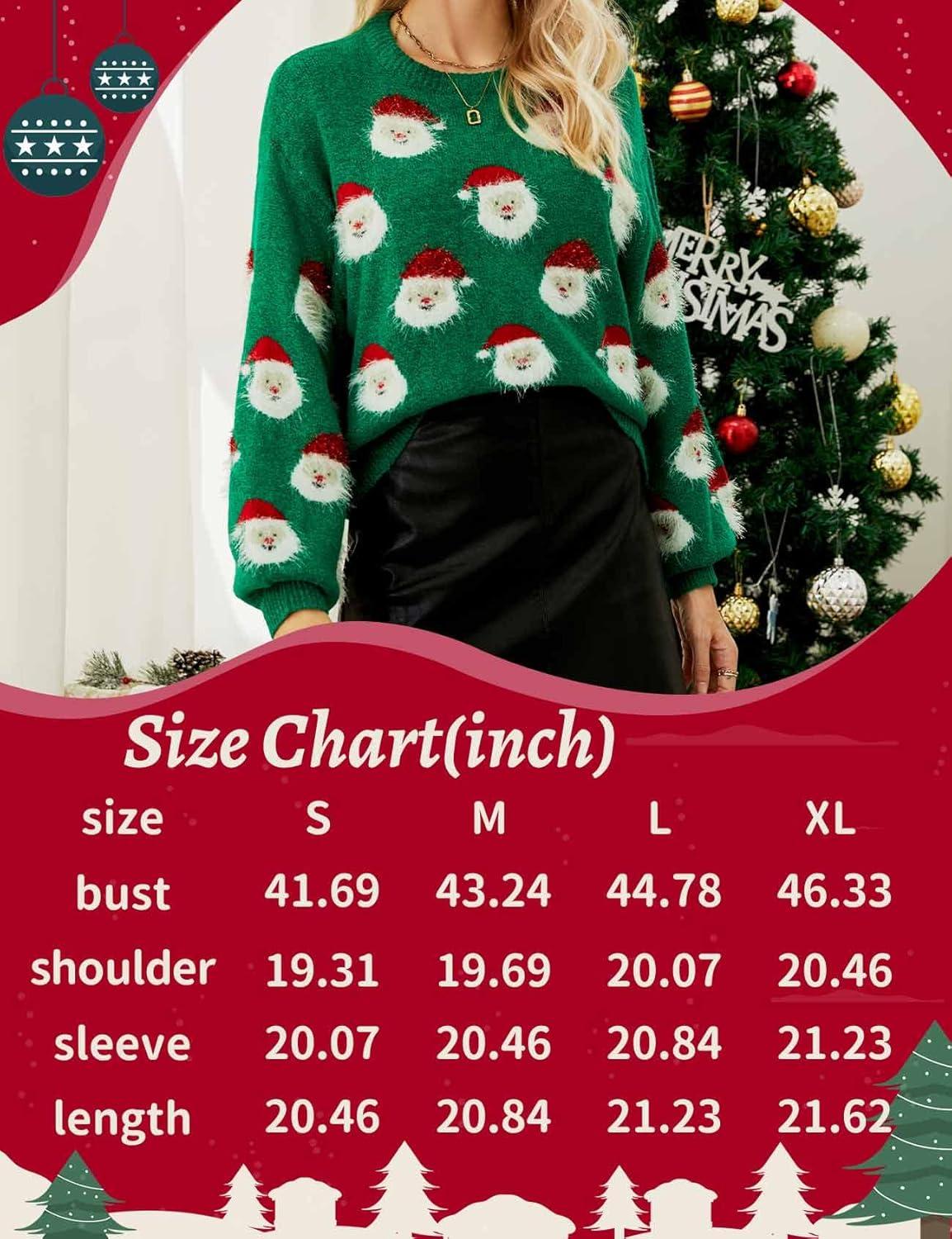 Arssm Women Santa Sweater Ugly Christmas Sweater Funny Xmas Holiday Party Knitted Cozy Pullover Sweatshirts Tops(Green)