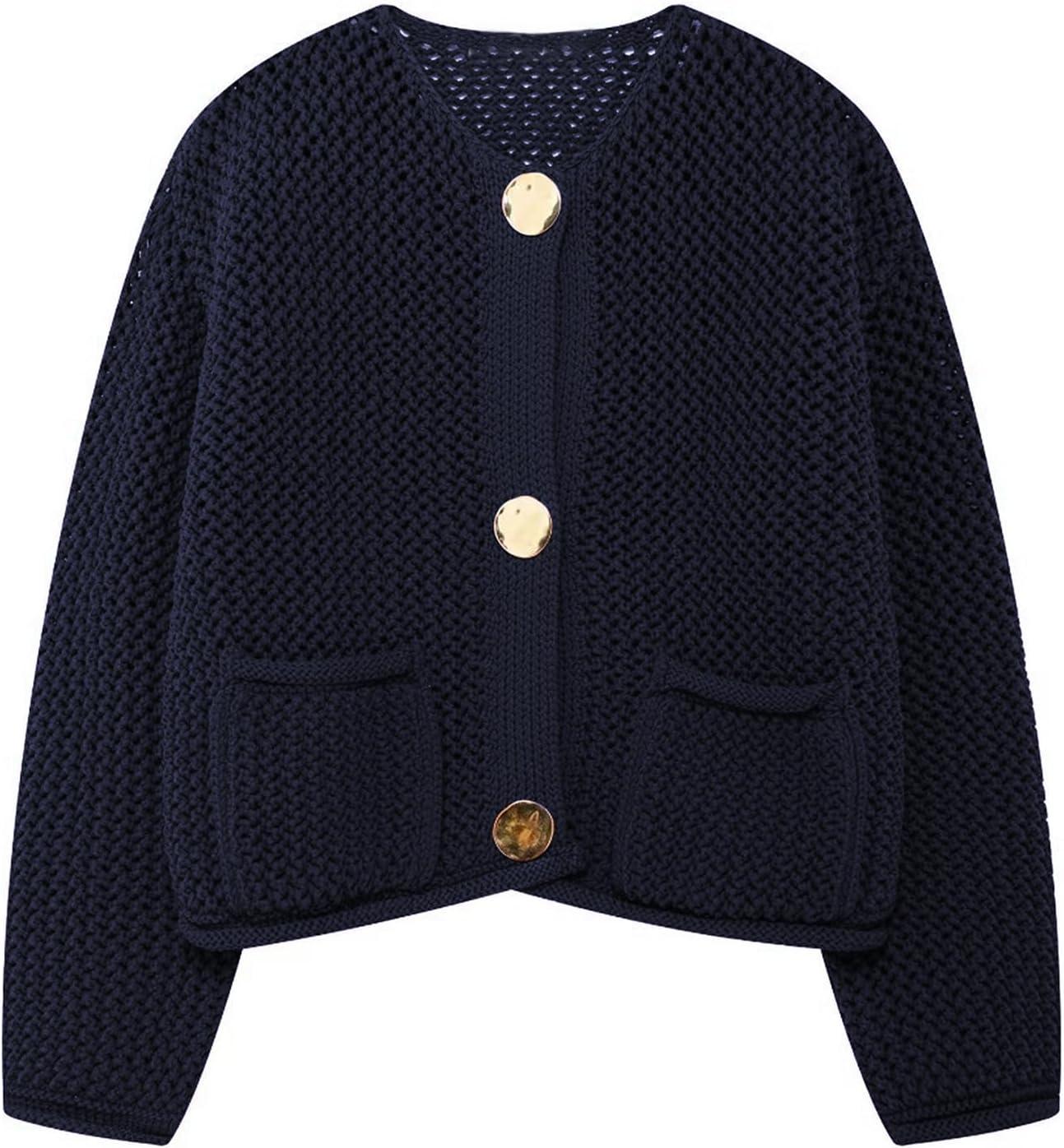 Arssm Womens Cardigan Sweaters 2024 V Neck Long Sleeve Sweater Button Down Knit Sweater Top with Pockets(Navy)