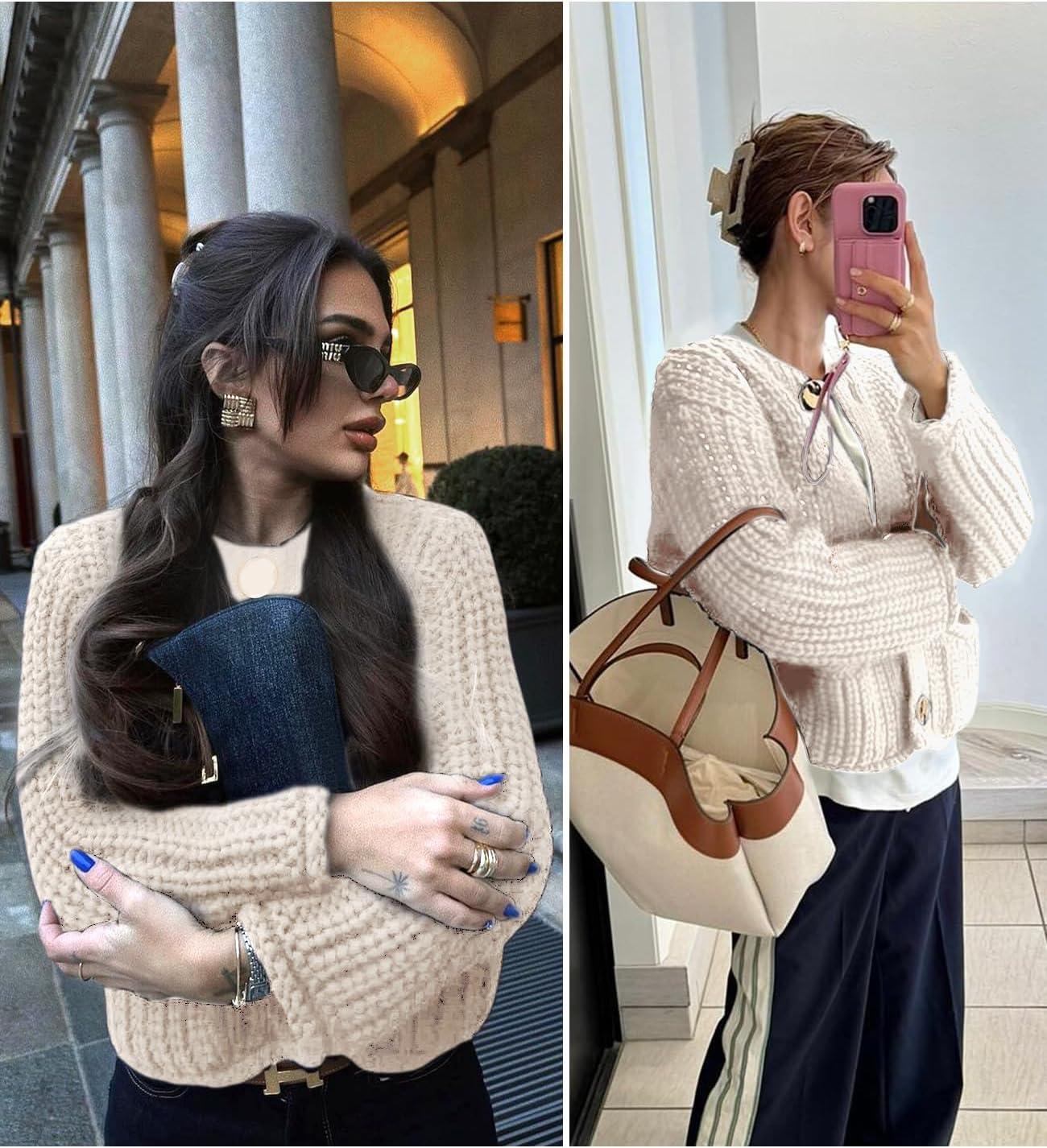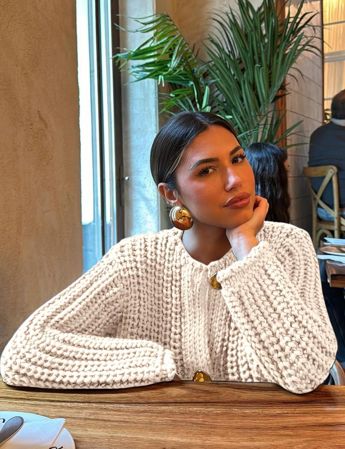 Arssm Womens Cropped Cardigan Sweaters Chunky Open Front Button Down Knit Sweater Long Sleeve Loose Cardigan Outerwear(Beige)