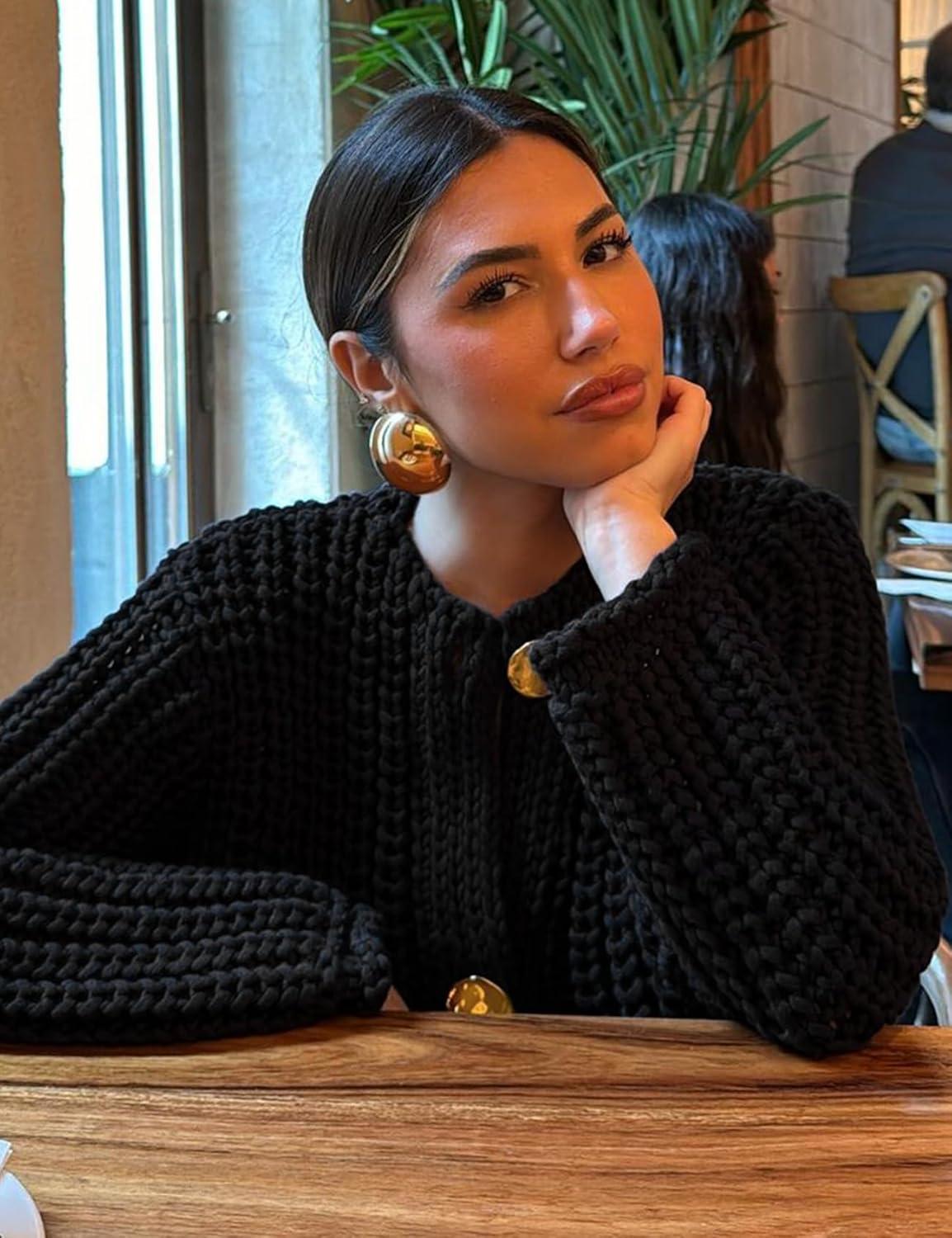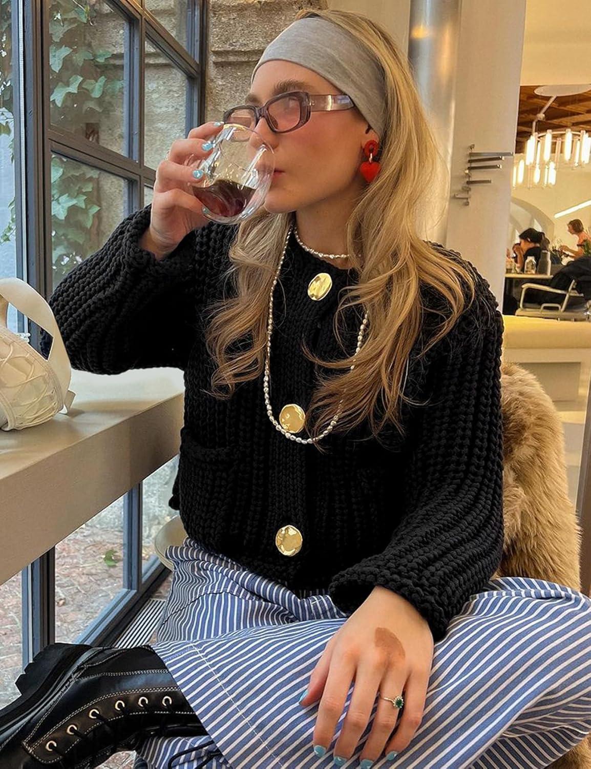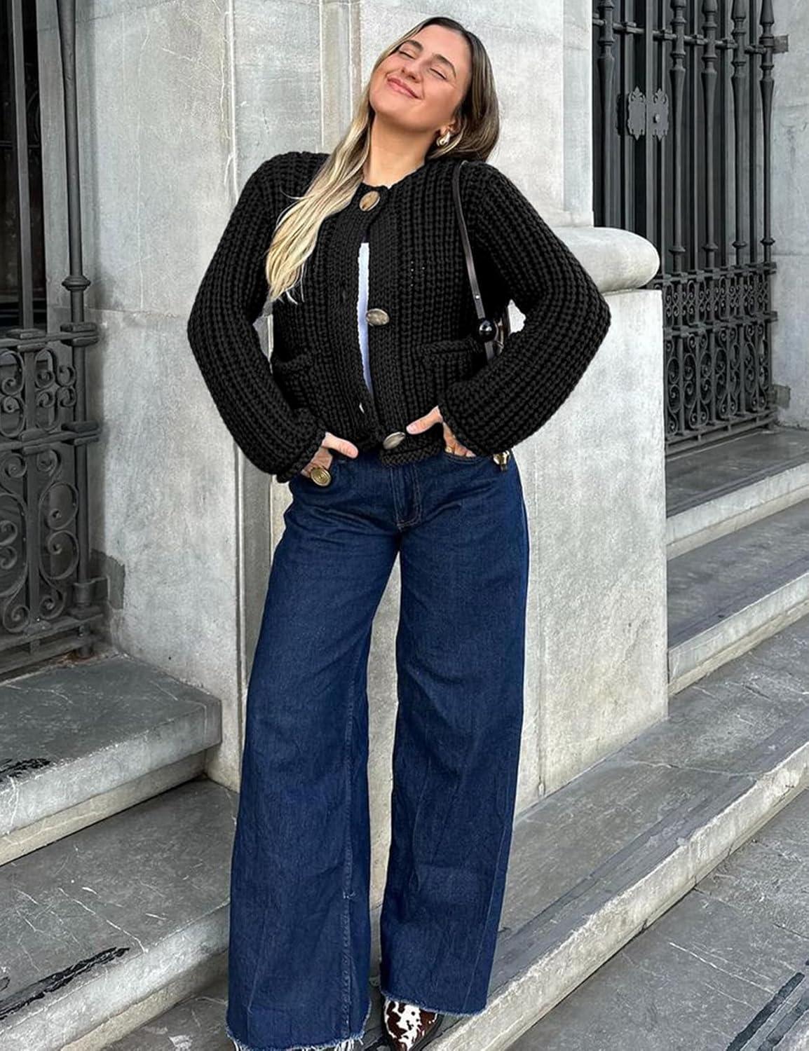 Arssm Womens Cropped Cardigan Sweaters Chunky Open Front Button Down Knit Sweater Long Sleeve Loose Cardigan Outerwear(Black)