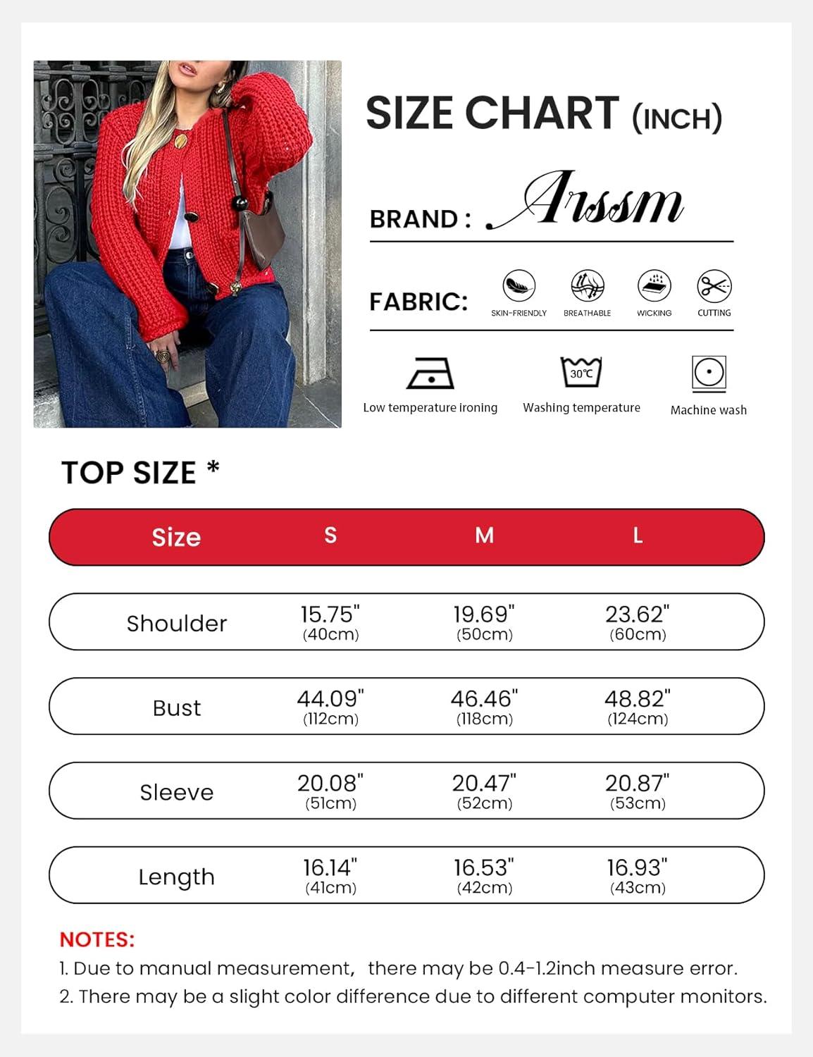 Be the first to review “Arssm Womens Cropped Cardigan Sweaters Chunky Open Front Button Down Knit Sweater Long Sleeve Loose Cardigan Outerwear(Red)”