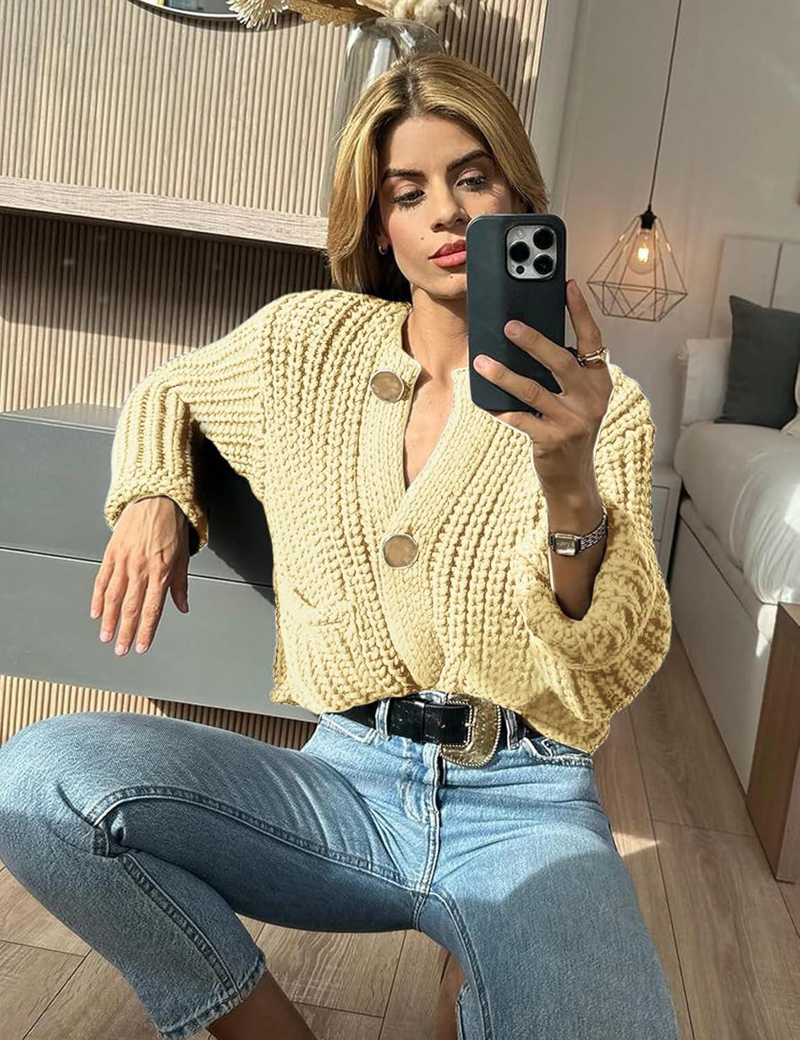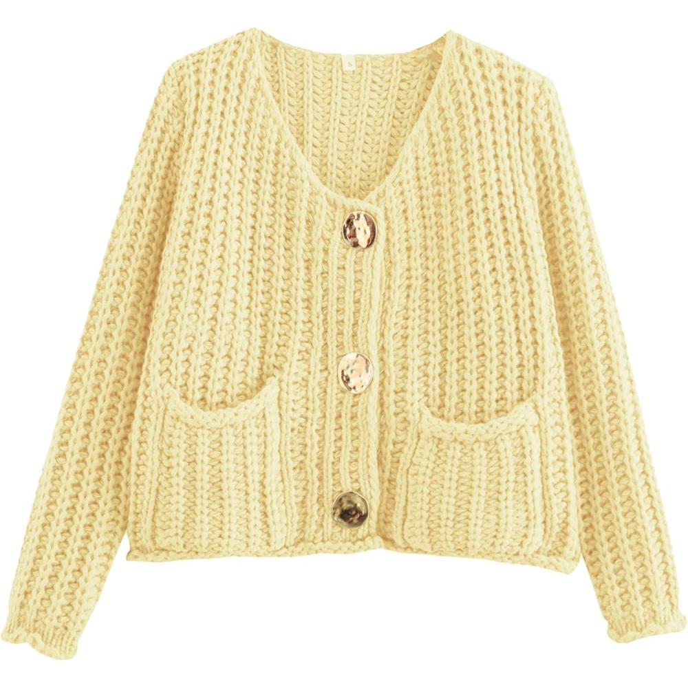 Arssm Womens Cropped Cardigan Sweaters Chunky Open Front Button Down Knit Sweater Long Sleeve Loose Cardigan Outerwear(Yellow)