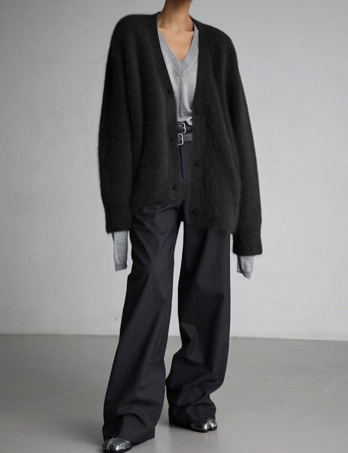 Arssm Womens Fuzzy Cardigan Sweater Long Sleeve Cardigans Button Down V Neck Fluffy Knit Top Fashion 2025 Knitwear(Black)
