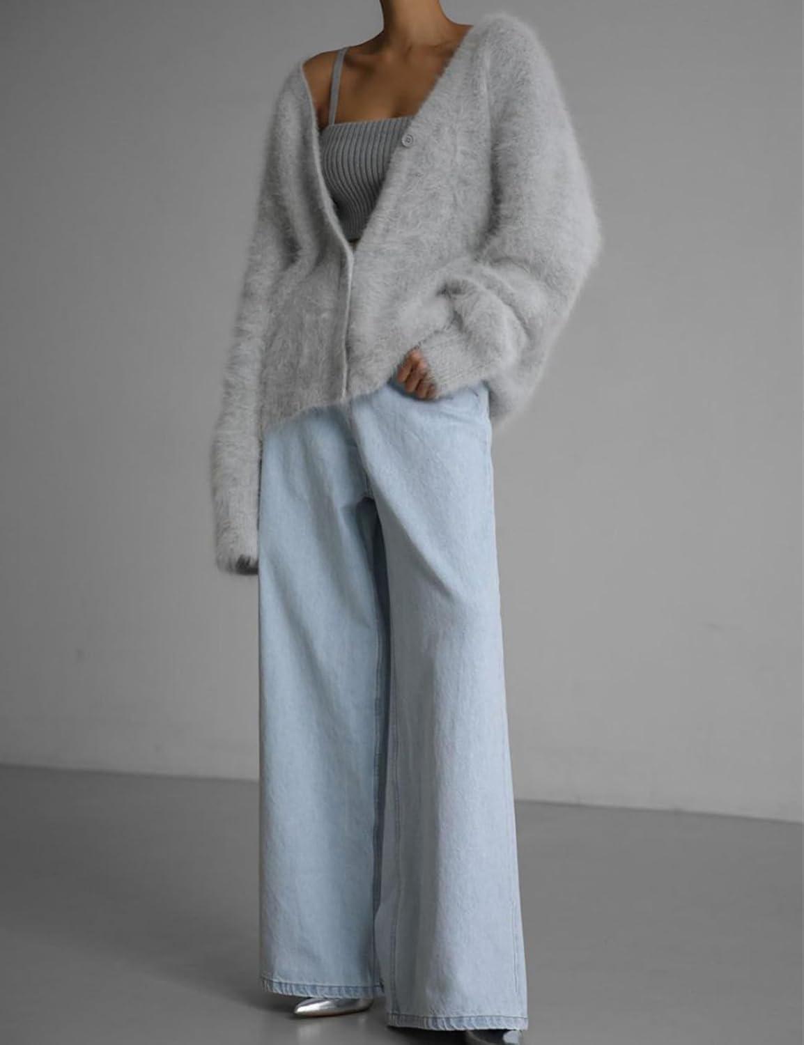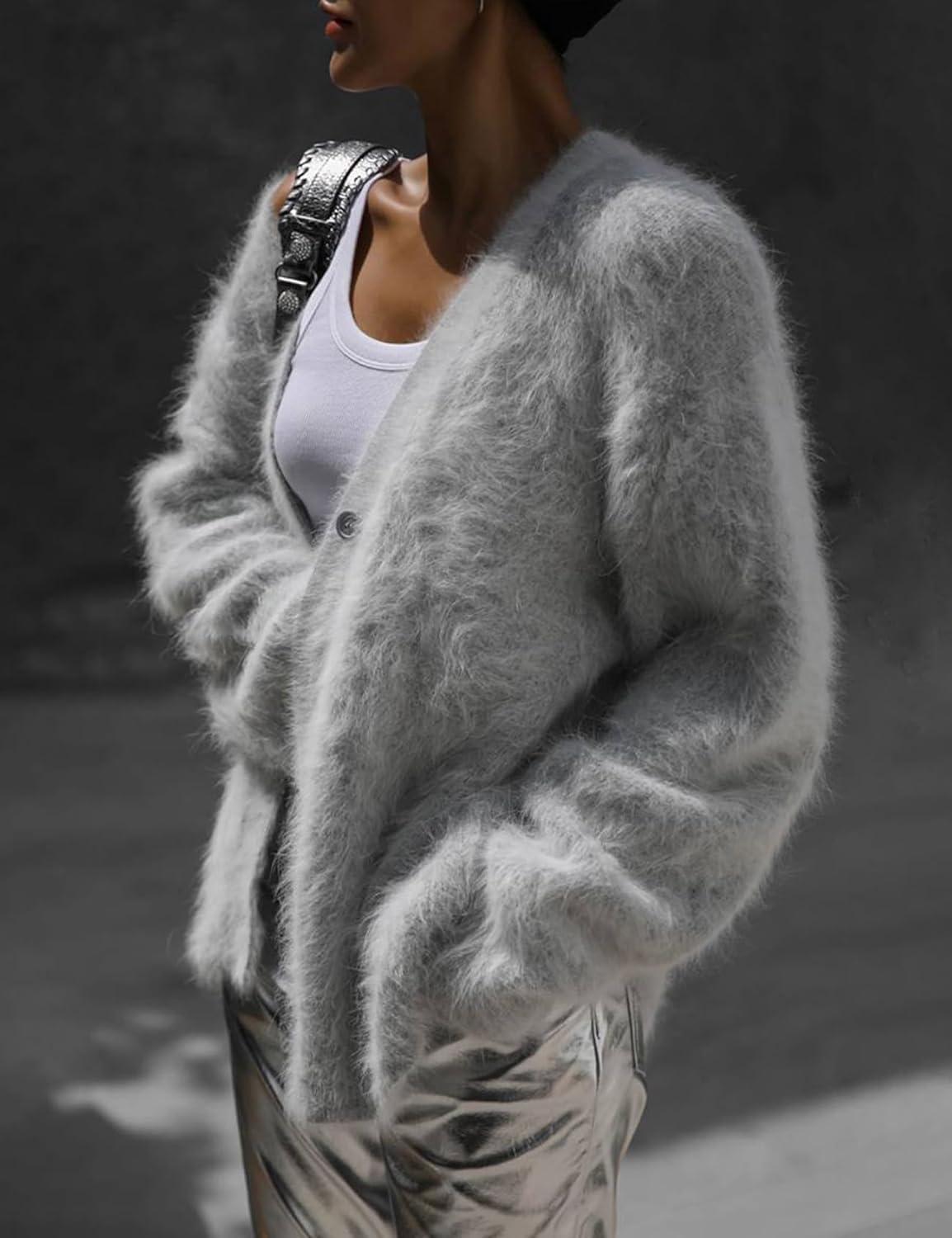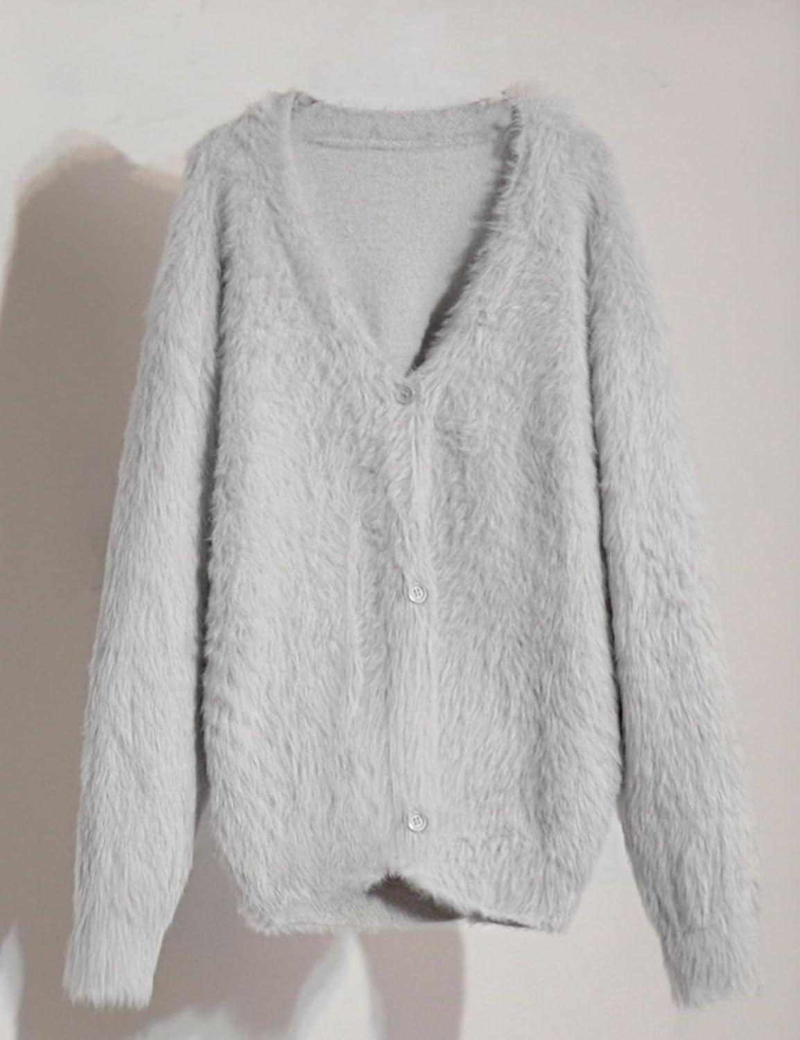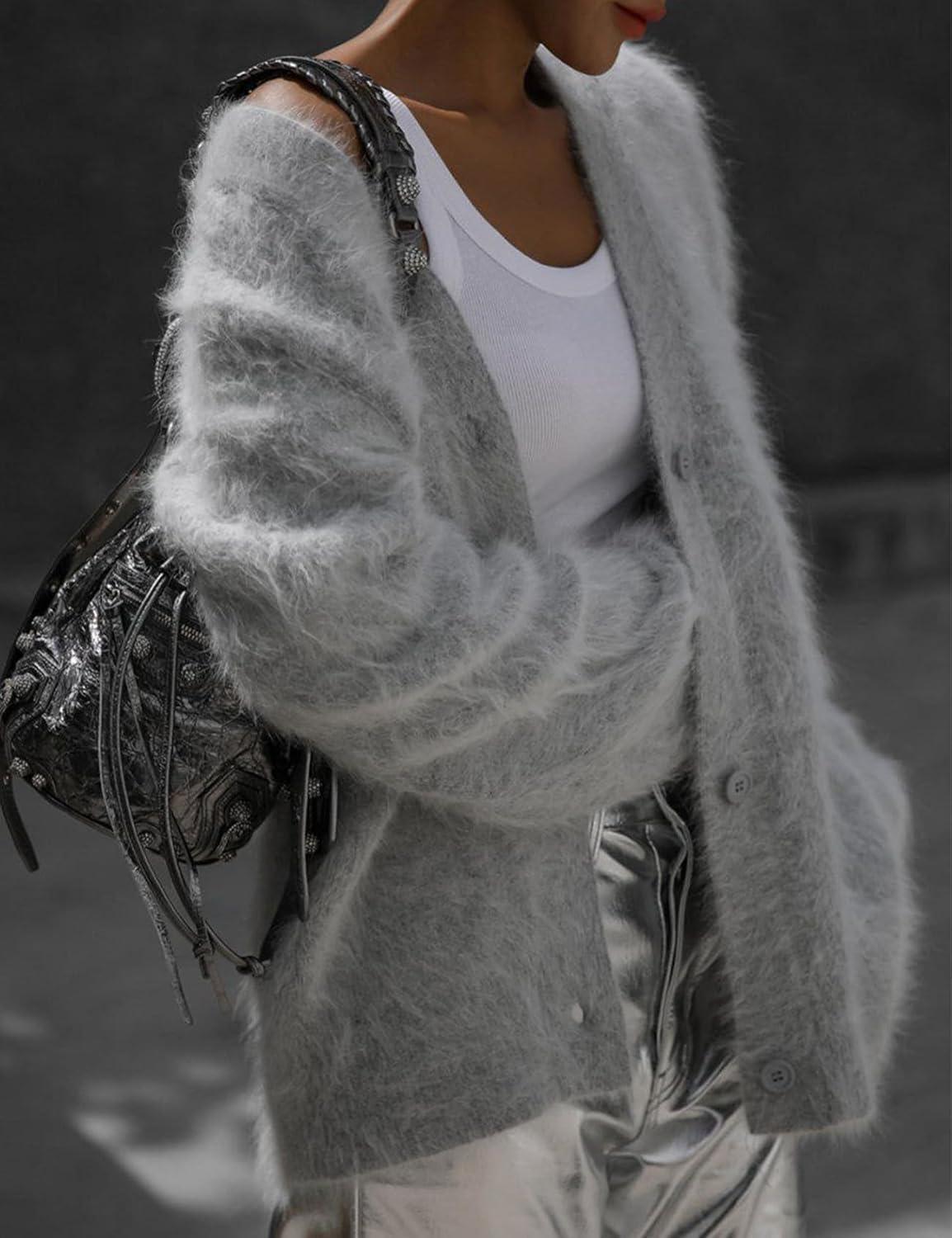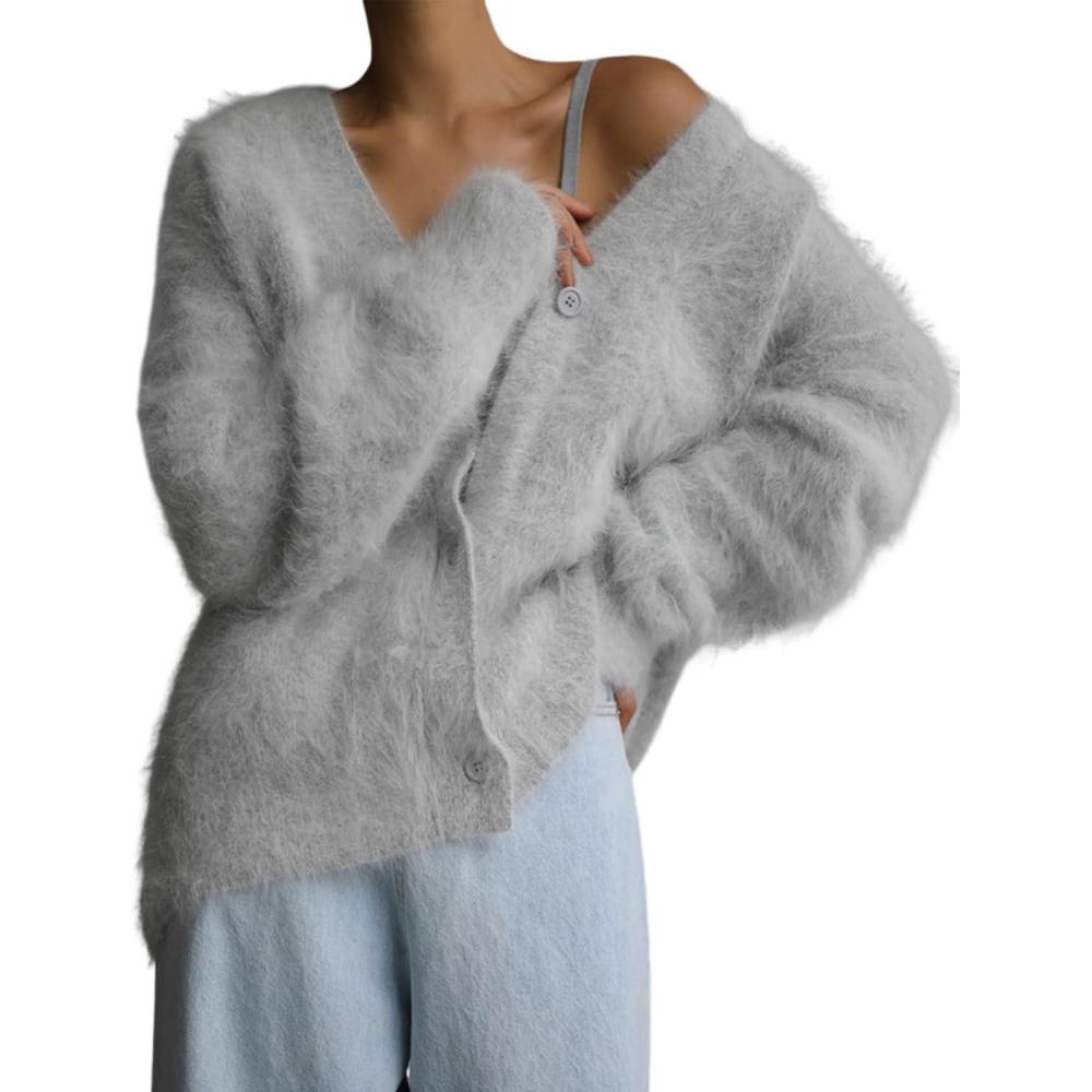 Arssm Womens Fuzzy Cardigan Sweater Long Sleeve Cardigans Button Down V Neck Fluffy Knit Top Fashion 2025 Knitwear(Lightgrey)