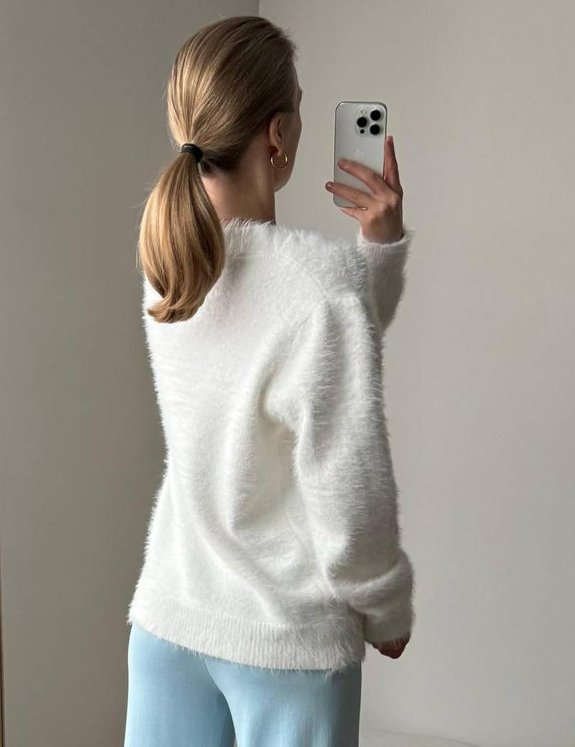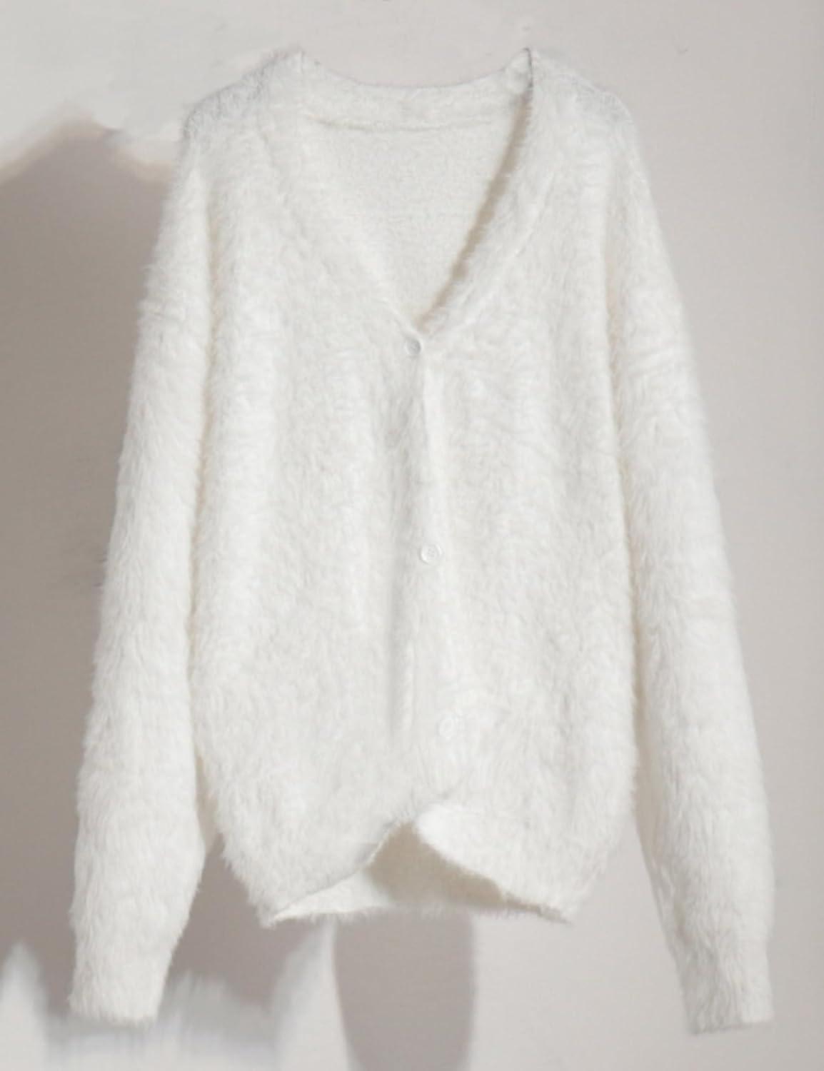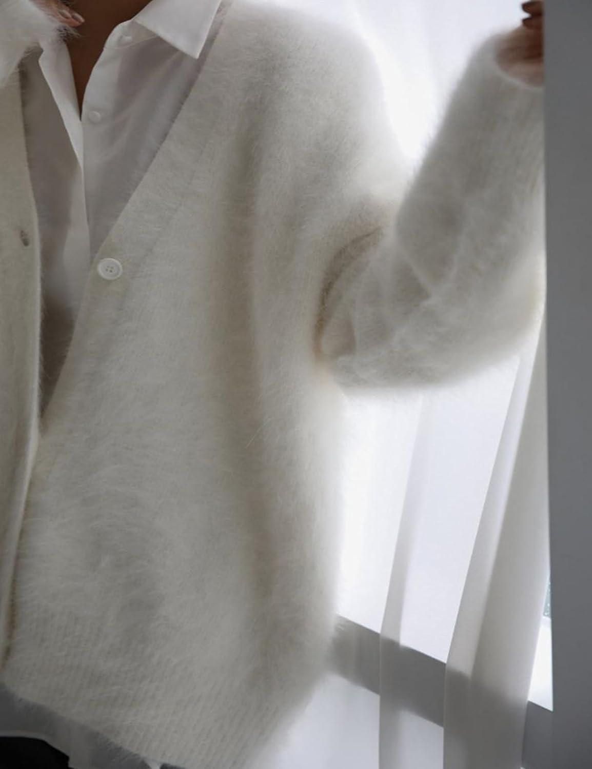 Arssm Womens Fuzzy Cardigan Sweater Long Sleeve Cardigans Button Down V Neck Fluffy Knit Top Fashion 2025 Knitwear(White)