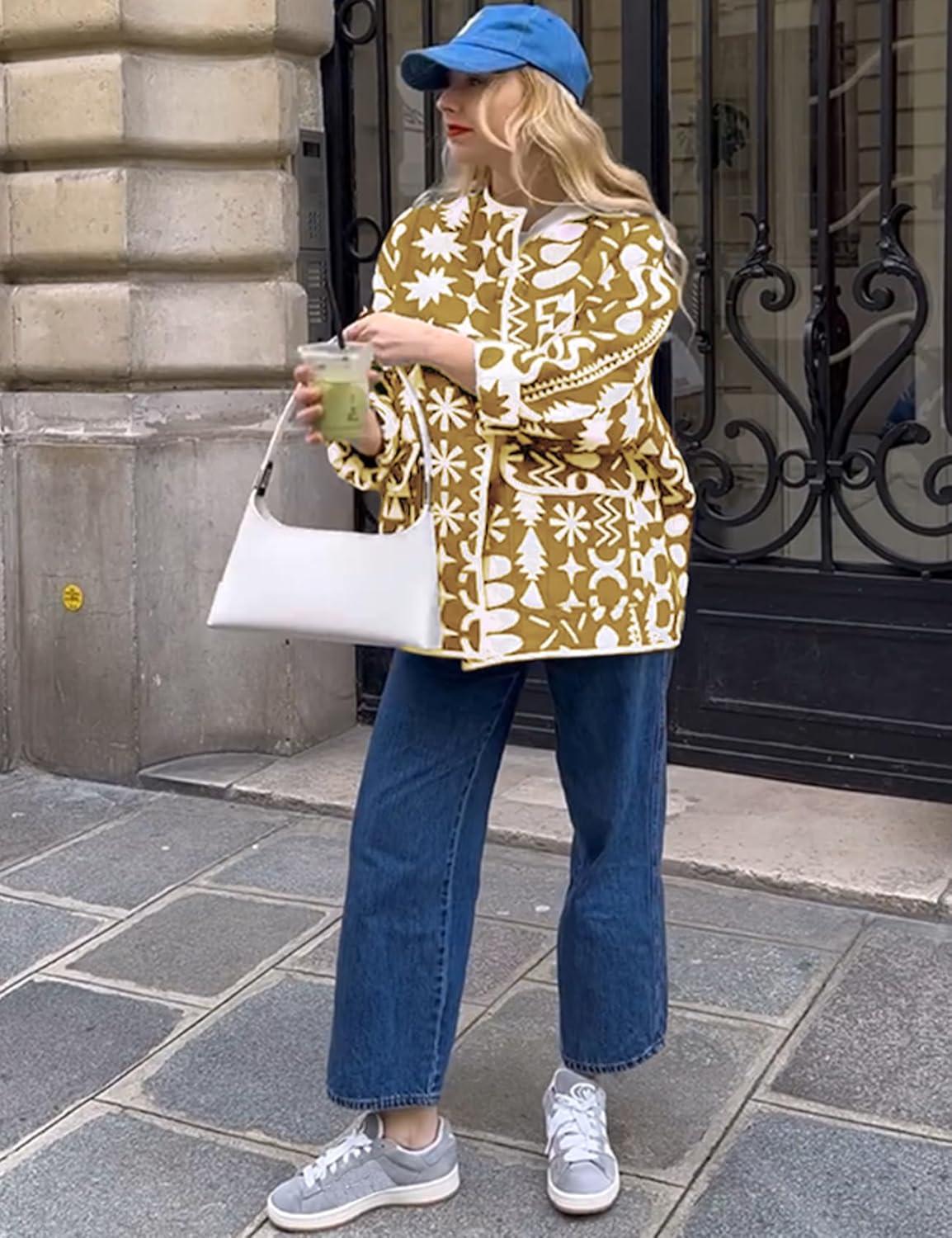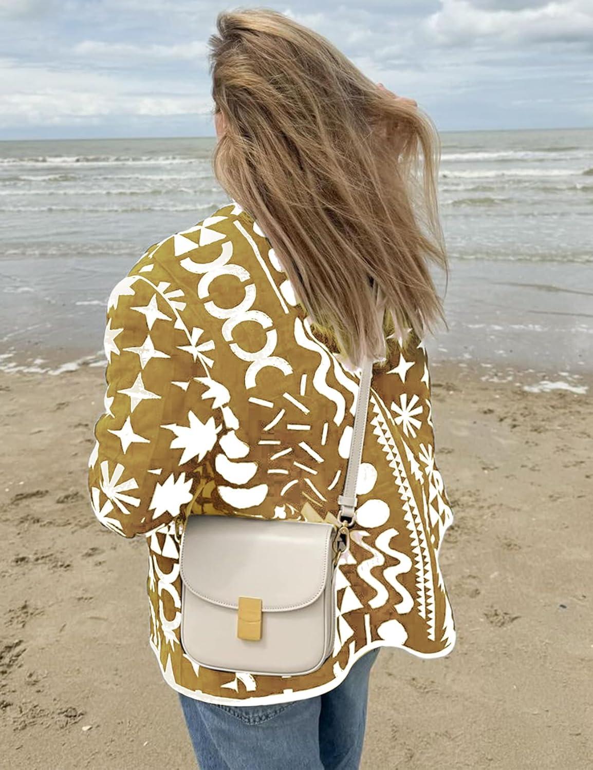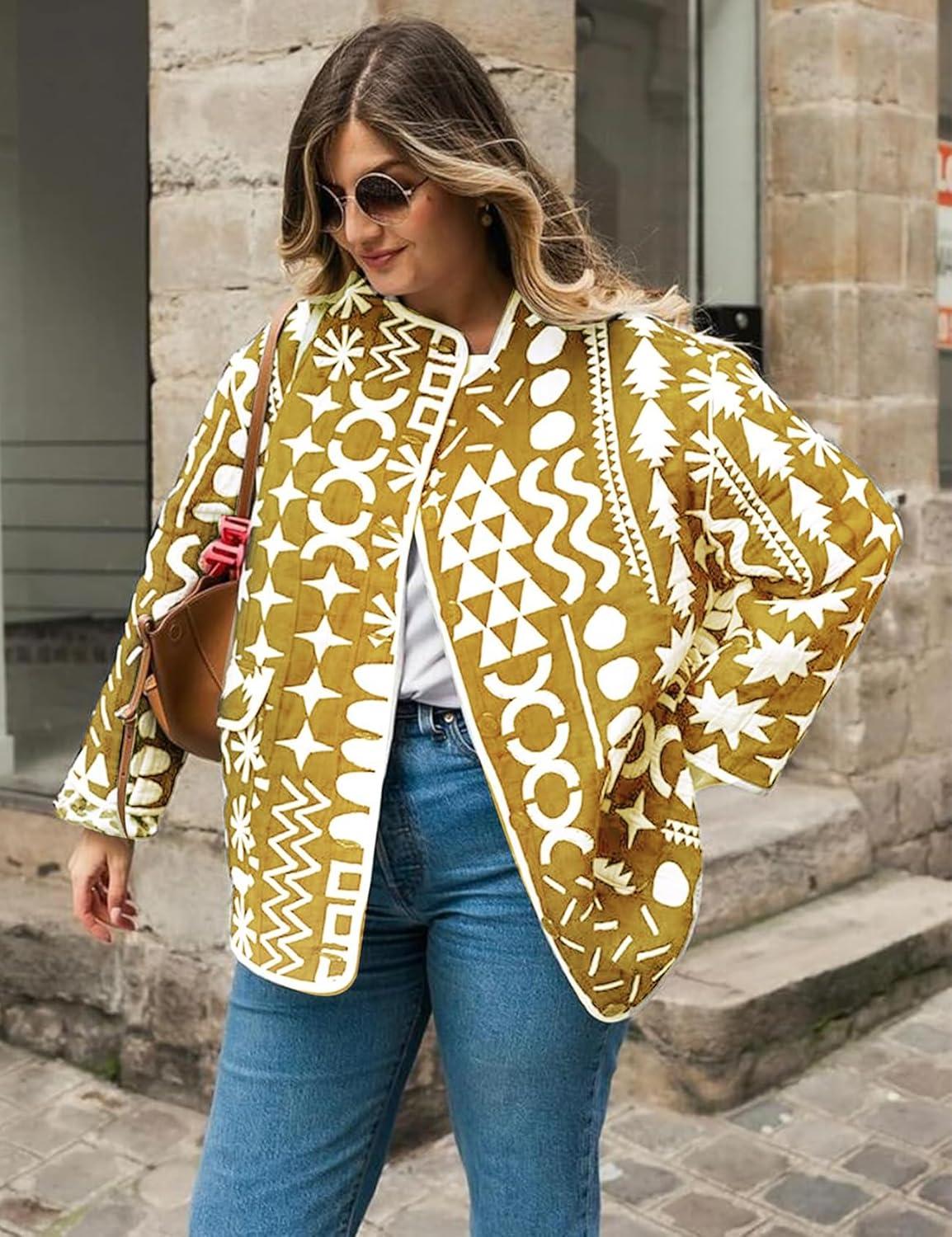 Arssm Womens Geometric Quilted Puffer Jacket Winter Lightweight Cute Jacket Padded Coat Crewneck Printed Outerwear(Khaki)