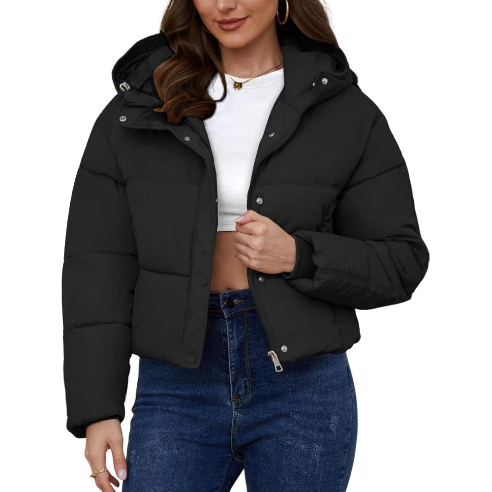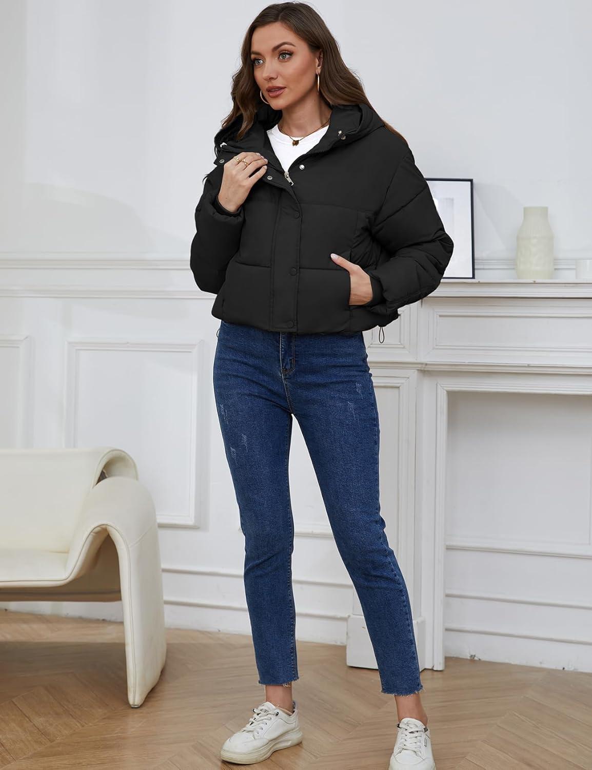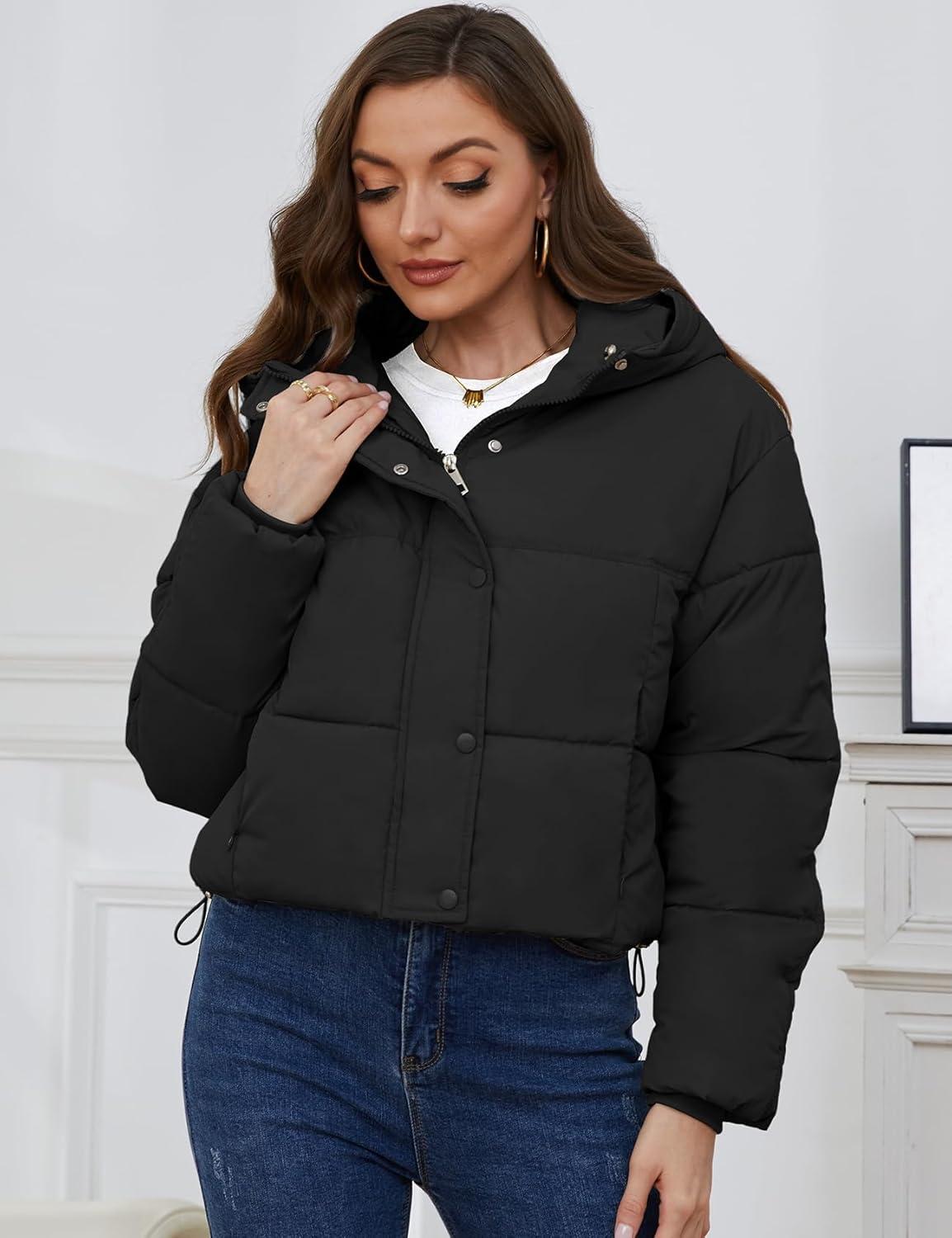 Arssm Womens Hooded Quilted Puffer Jacket Winter Warm Padded Coats Long Sleeve Puffy Bubble Coat with Hood(Black)