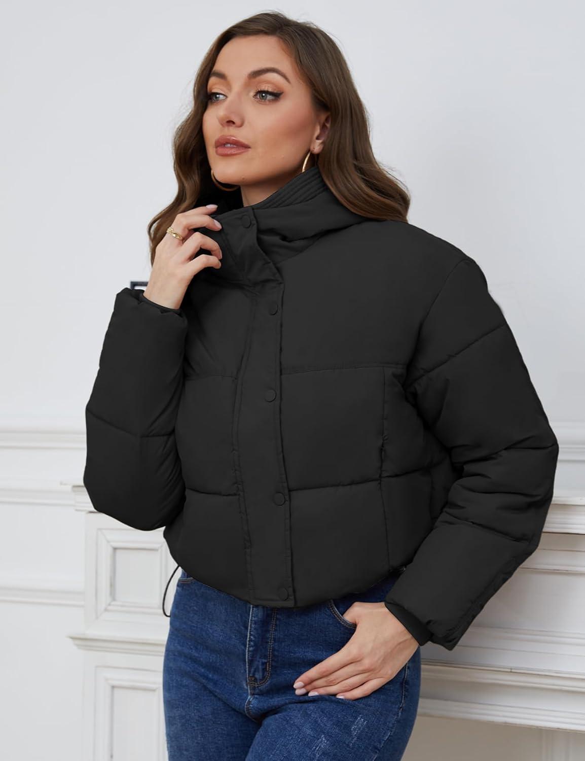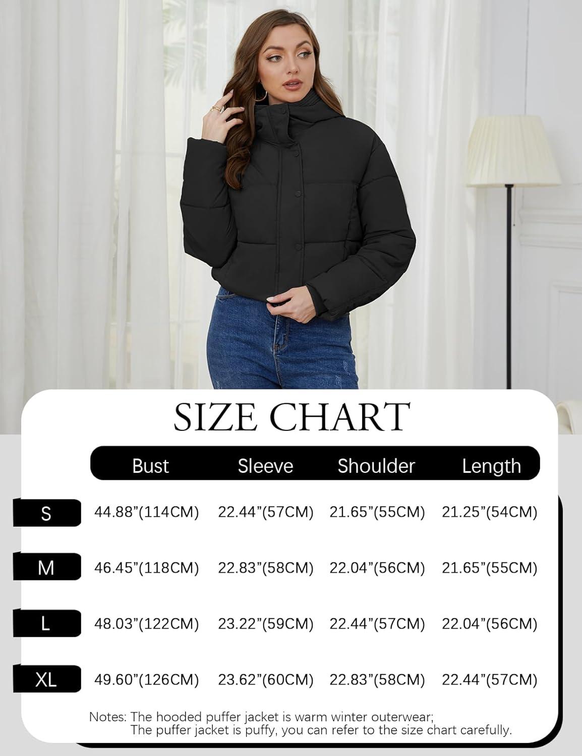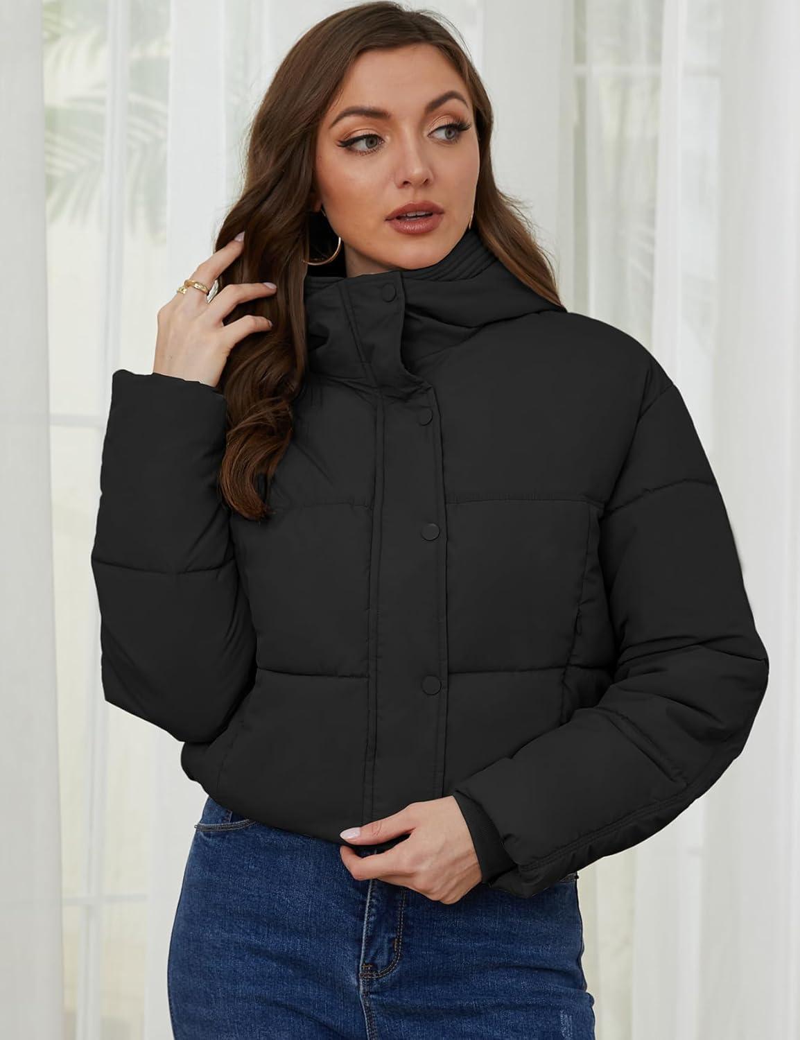Arssm Womens Hooded Quilted Puffer Jacket Winter Warm Padded Coats Long Sleeve Puffy Bubble Coat with Hood(Black)