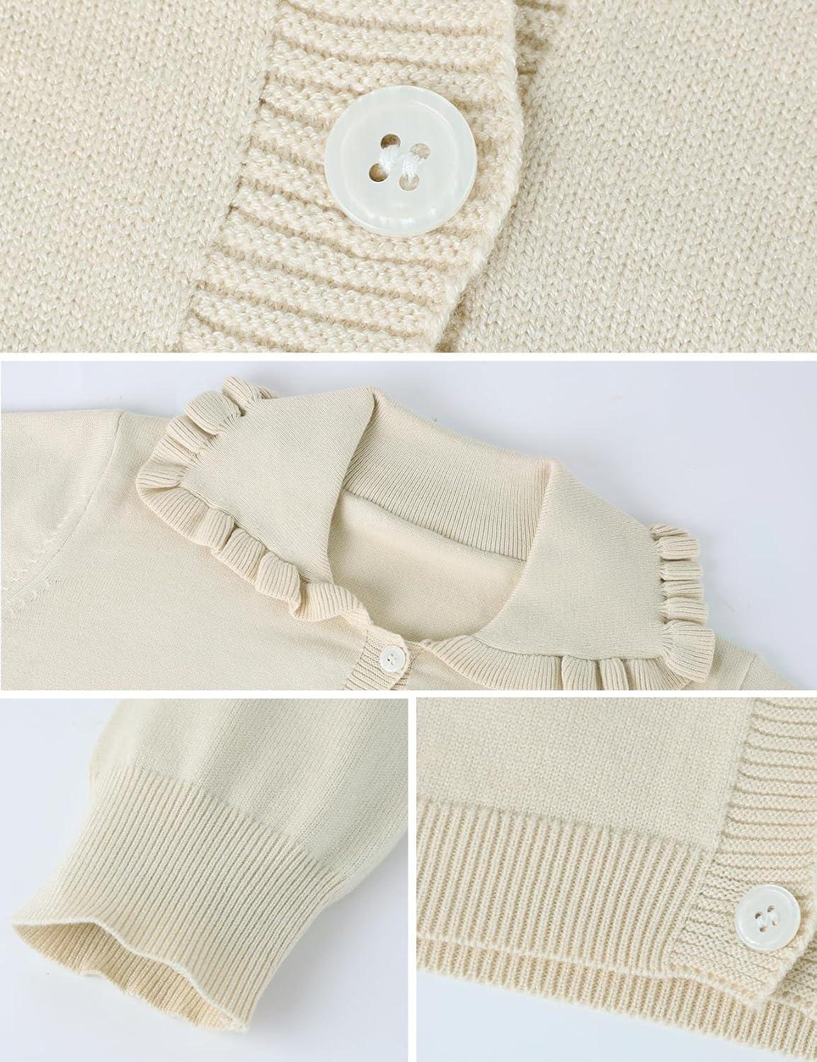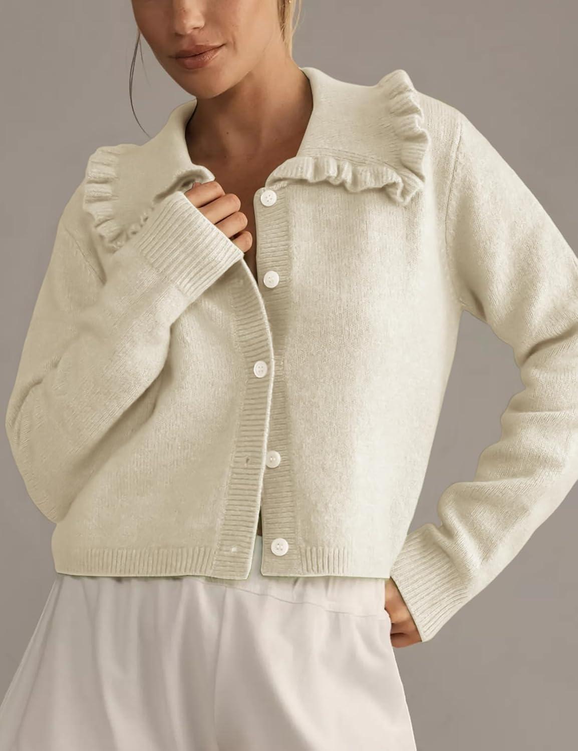 Arssm Womens Ruffle Collar Cardigan Cropped Button Down Open Front Sweaters Knitted Long Sleeve Fall 2025 Elegant Outwear(Apricot)