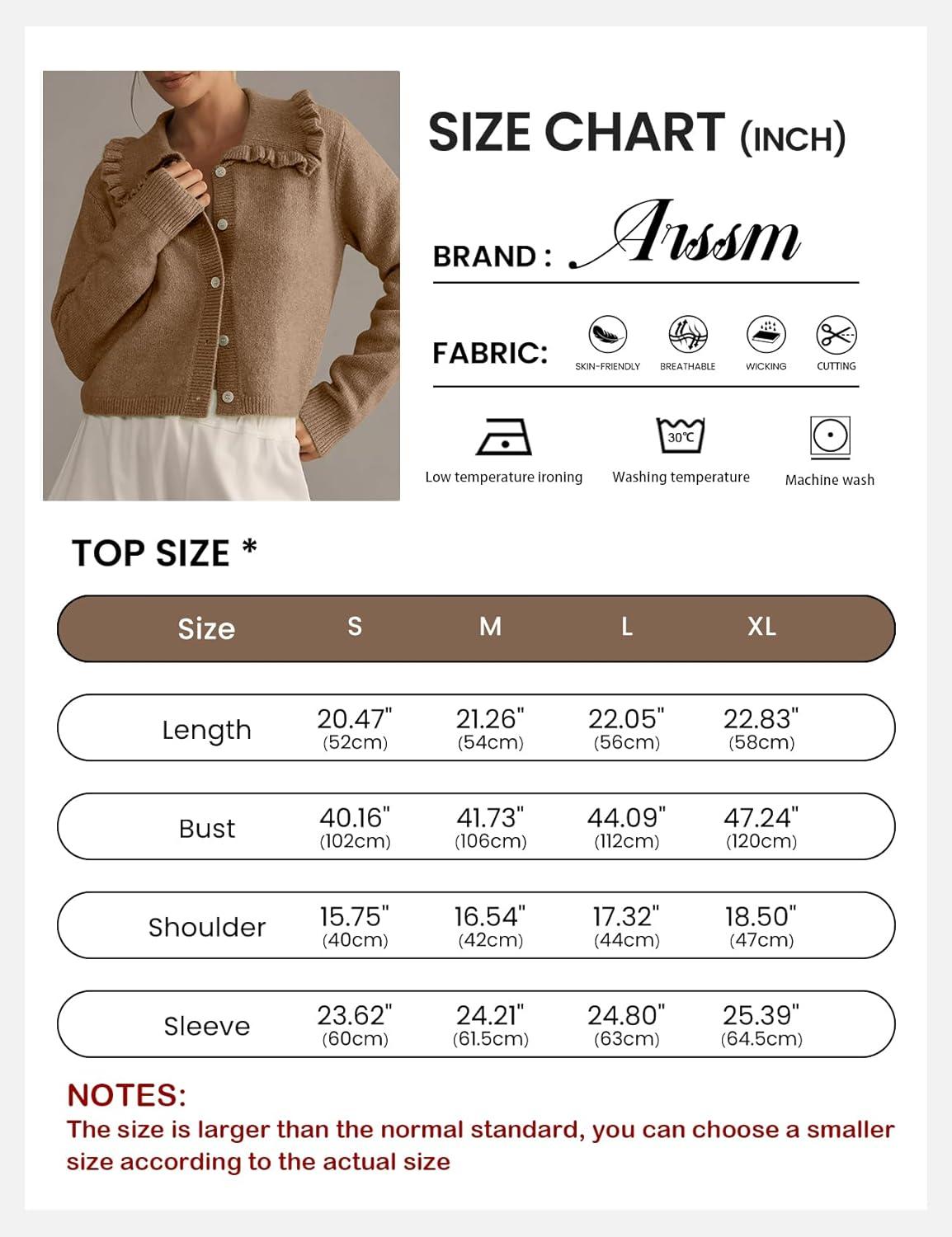 Be the first to review “Arssm Womens Ruffle Collar Cardigan Cropped Button Down Open Front Sweaters Knitted Long Sleeve Fall 2025 Elegant Outwear(Brown)”
