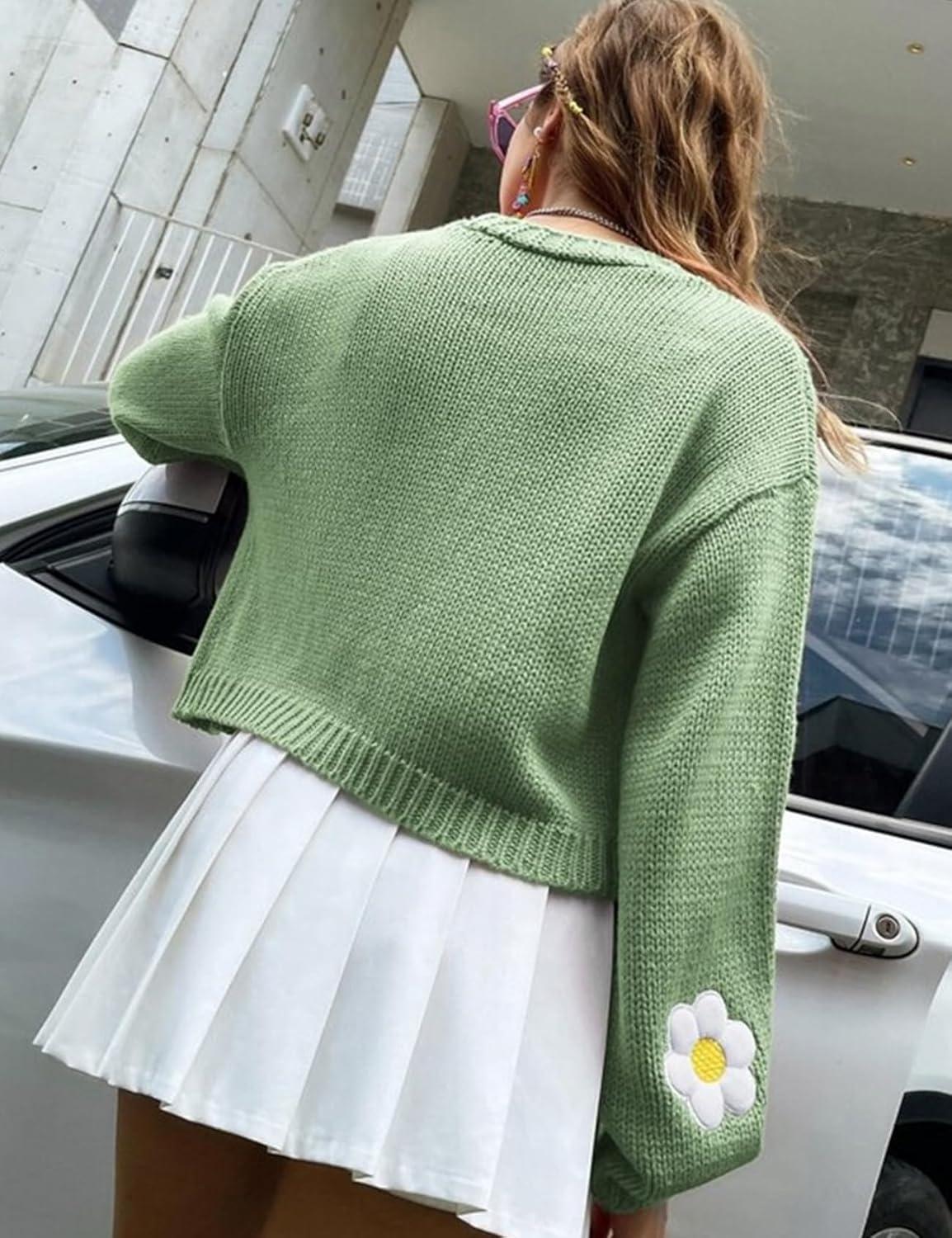 Arssm Y2K Womens Flower Cardigan Sweater Long Sleeve Knit Cropped Cardigan Open Front Cute Shrug Fall Sweater 90s Outfits(Green)